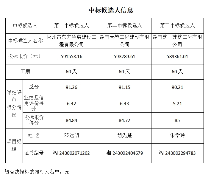 根据招标投标相关法律法规及招标文件的规定,小圩壮族乡小圩社区人居环境整治项目已于2025年1月20日9时30分在江华瑶族自治县重点项目服务中心开标、评标,本项目评标办法采用湘建监督〔2024〕33 号文件规定的:经评审的最低投标价法”。评标委员会推荐了三名中标候选人(排序),现将相关信息予以公示。