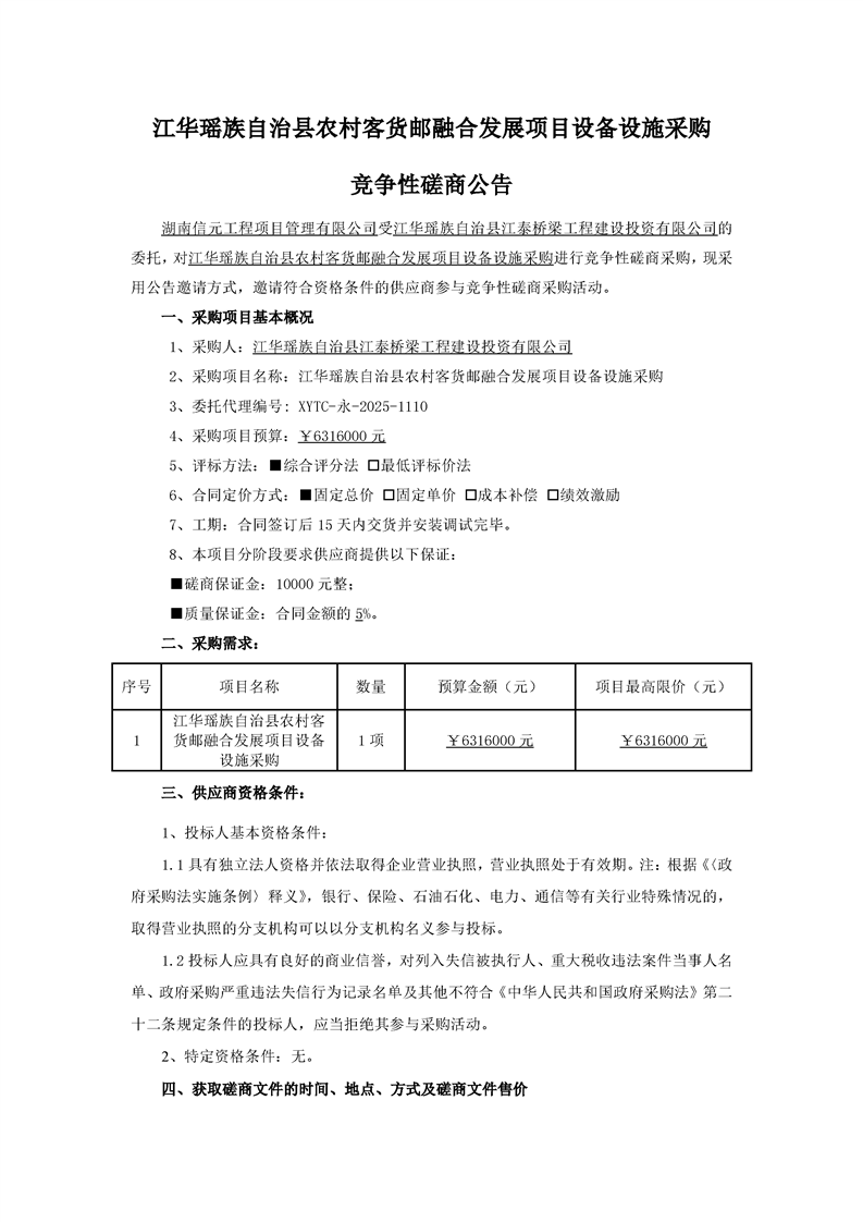 江华瑶族自治县农村客货邮融合发展项目设备设施采购竞争性磋商公告