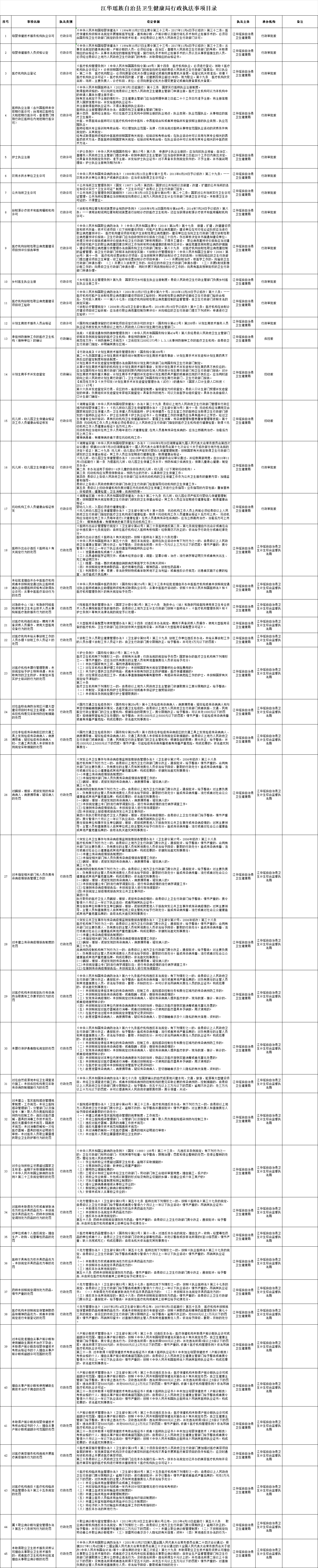 江华瑶族自治县卫生健康局行政执法事项目录
