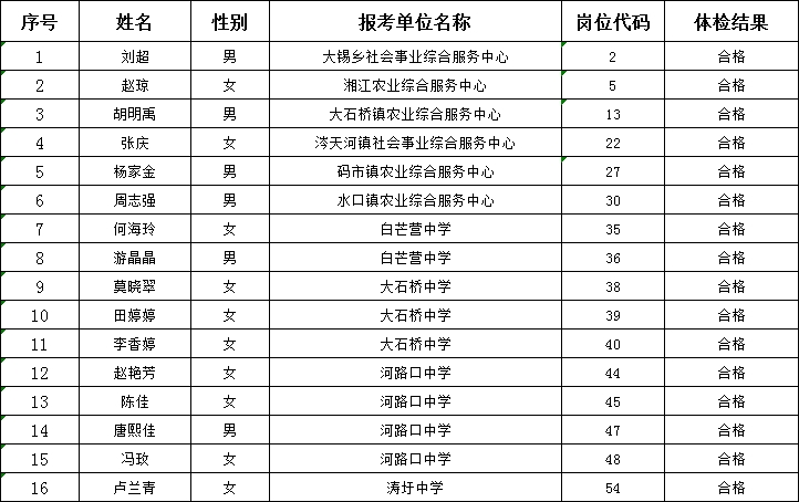 2020年第二批基层急需紧缺人才公开招聘人员体检结果公示