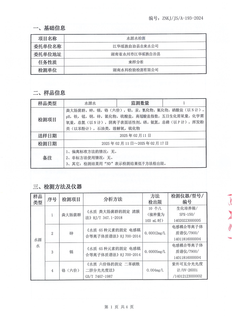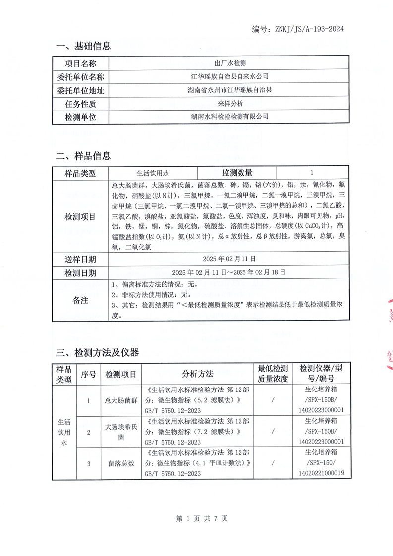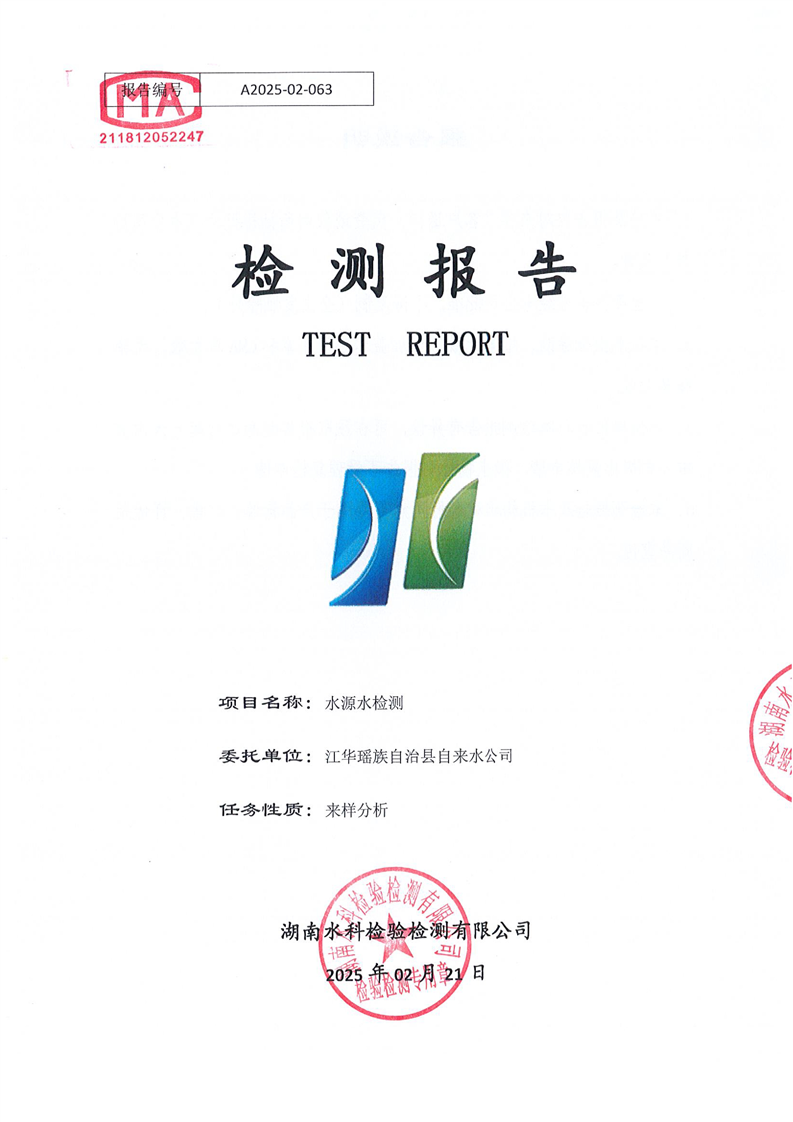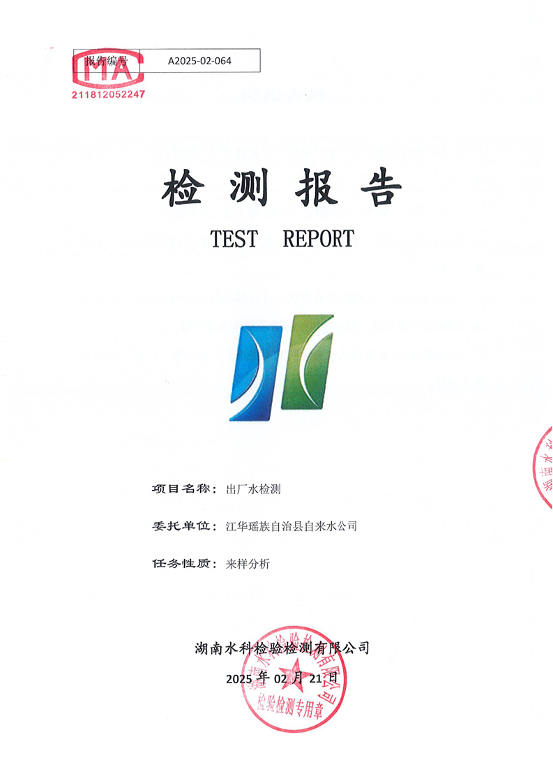 江华瑶族自治县自来水公司2025年2月份水质检测报告(43项)