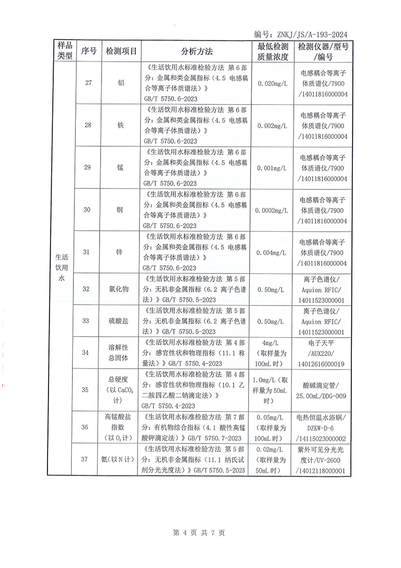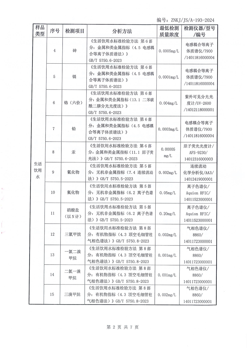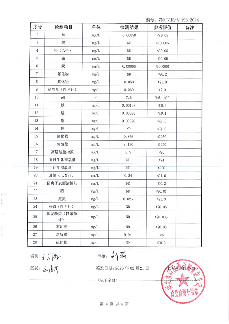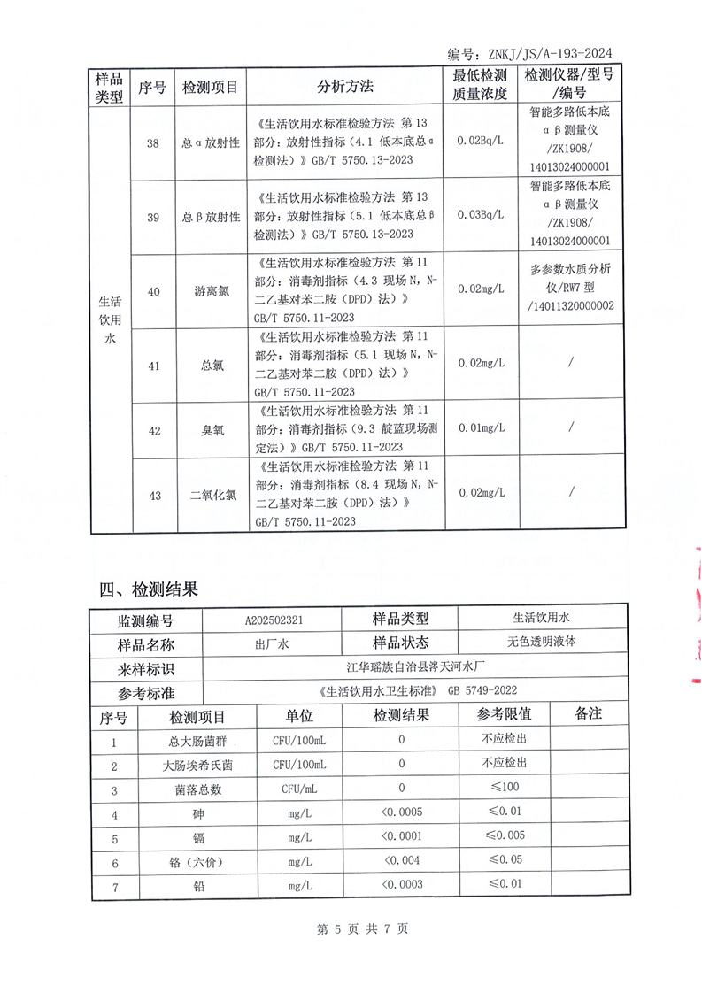 江华瑶族自治县自来水公司2025年2月份水质检测报告(43项)