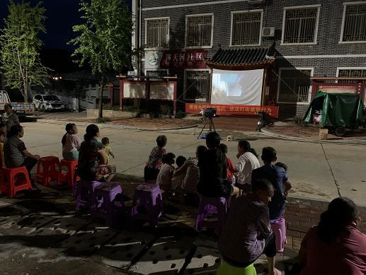 8月19日晚,江华瑶族自治县涔天河镇涔天河社区门口早早地坐满了老百姓,一场公益电影下乡活动即将拉开帷幕。