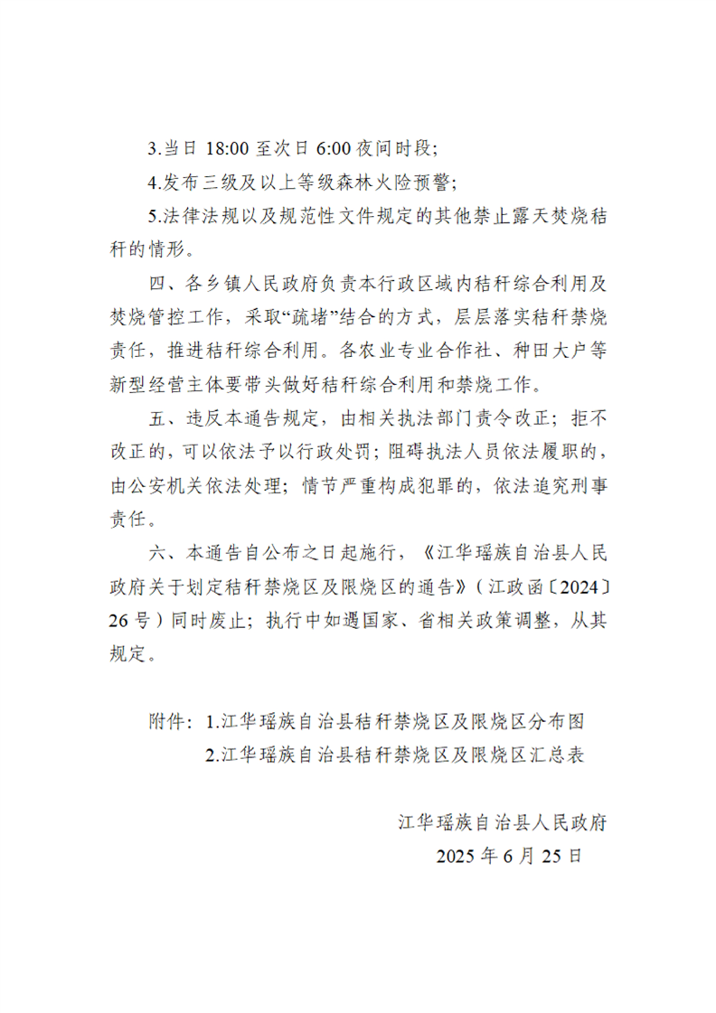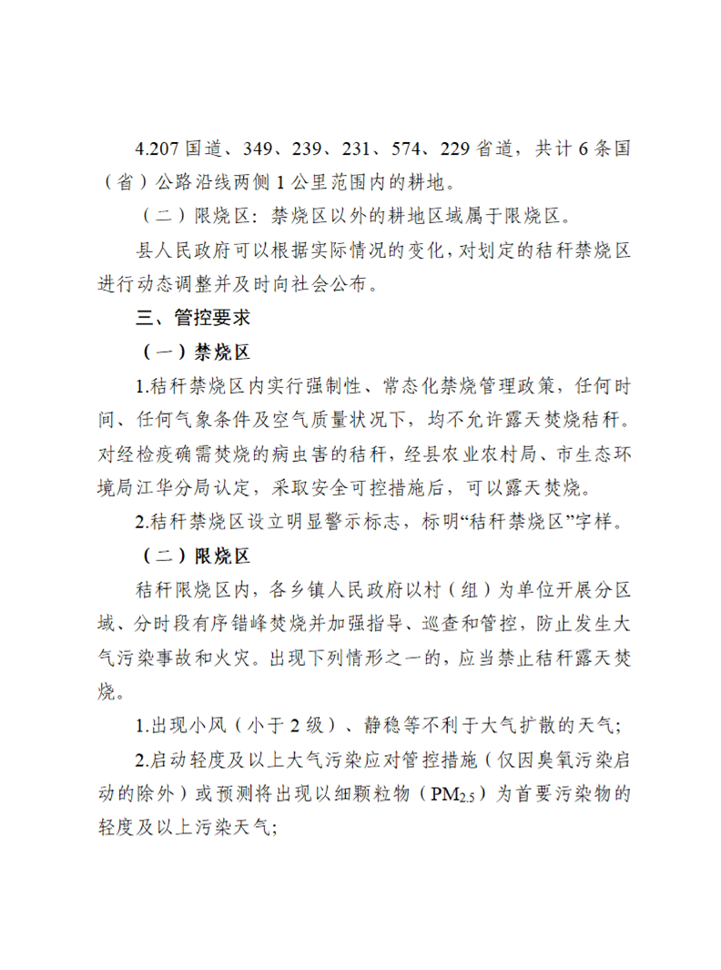 江华瑶族自治县人民政府关于划定秸秆禁烧区及限烧区的通告