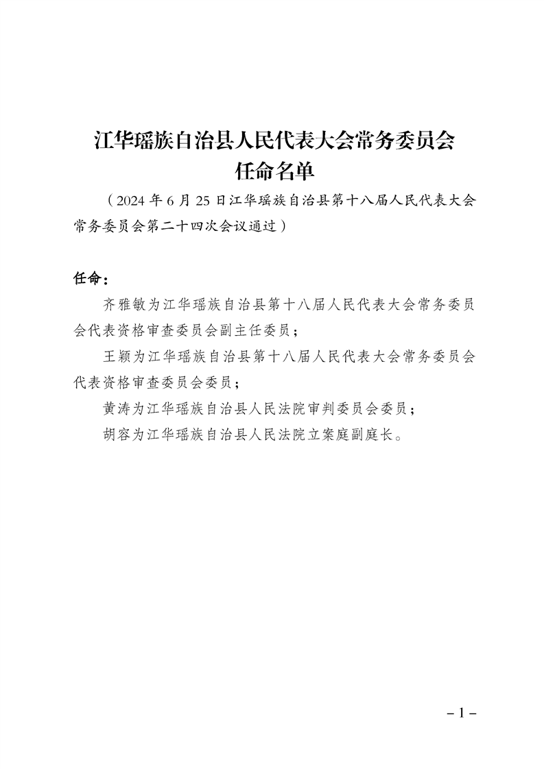江华瑶族自治县人民代表大会常务委员会任命名单
