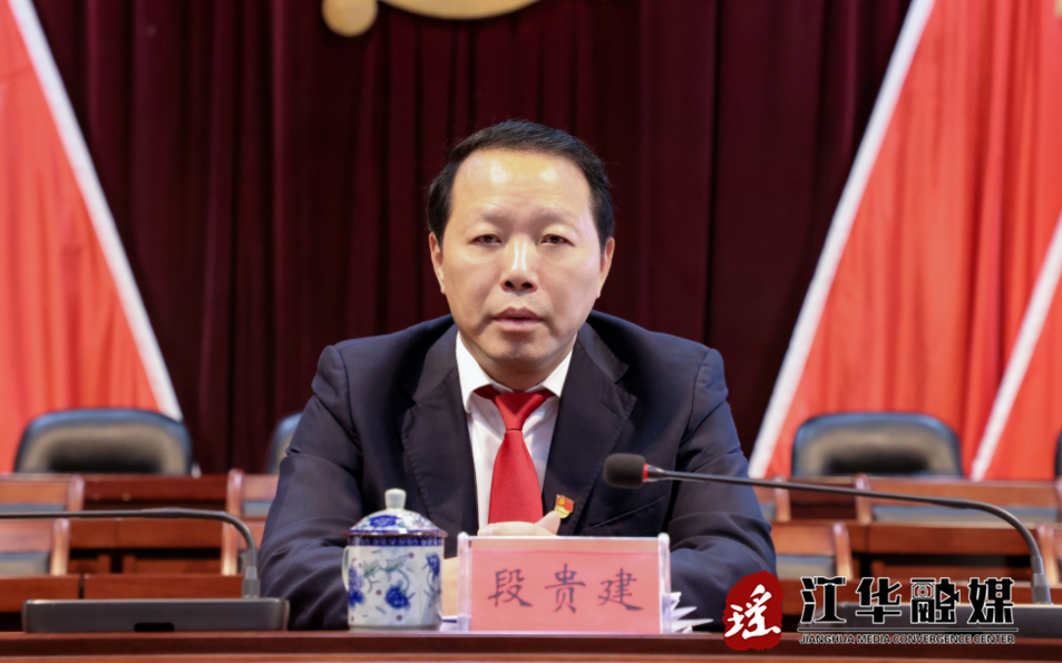 段贵建强调,要同心同德,用一种声音抓落实。县委做的决策,全会通过的决议和意见,全县上下必须认真贯彻执行,大家要拧成一股绳,心往一处想、劲往一处使,锚定打造全国民族地区县域经济高质量发展标杆、综合实力稳居全国瑶族自治县第一、力争挺进民族地区县域前十强的总目标,在中国式现代化进程中展现江华作为。要和衷共济,用一个步调抓落实。各级领导干部要在不折不扣、无条件执行上下功夫,做到思想上特别重视,政治上特别清醒,行动上特别坚决,绝不容许出现“看客心理”“躺平心态”,要自觉主动抓好落实,一步一个脚印把县委重大决策部署付诸行动、见之于成效,以实际行动诠释忠诚、体现担当。要善作善成,用一门心思抓落实。要始终将县域经济高质量发展摆在重要位置,把责任扛在肩上、抓在手上,将主要精力放在抓发展第一要务上,着力补短板、锻长板、扬优势,专心致志抓好目标任务落实,以“关键少数”带动“绝大多数”,形成一级抓一级、层层抓落实的工作局面。要久久为功,用一以贯之抓落实。江华高质量发展的蓝图已经绘就,大家要以“钉钉子”精神,持之以恒抓落实,紧盯高质量发展的目标和重点任务,加强作风建设,在困难面前迎难而上,不推诿、不逃避,在风险面前积极应对,不畏缩、不躲闪,敢想善干有为,让高质量发展的蓝图在我们的手中变成美好现实。