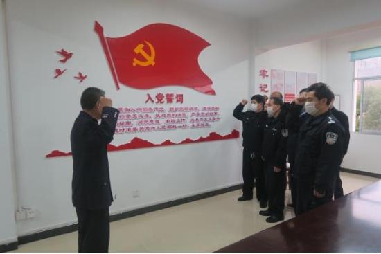 2月15日,看守所党支部组织党员民警、职工开展了“防疫情,我在前”主题党日活动,活动中全体人员重温入党誓词。党员民警、职工纷纷承诺要在疫情防控工作中站排头、当主力、做示范,让党旗飘扬在阻击疫情的第一线。