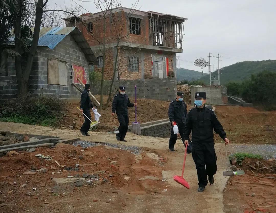 当天中午,巡特警大队民警、巡特警队员来到界牌乡芝源村向群众宣传疫情防治、禁毒禁赌、防诈骗等知识,提高群众的安全防范意识和法律意识。在贫困户家中,民辅警拿起工具帮助他们打扫卫生、清洁消毒,共同谋划春耕生产,助力他们早日走出生活困境。