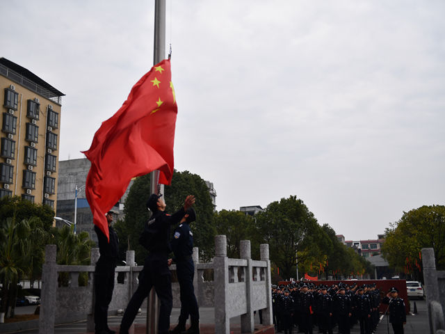 金龙腾云辞岁去,灵蛇献瑞启新篇。2月5日,江华瑶族自治县公安局隆重举行迎新春升国旗仪式,副县长、公安局长李新建出席仪式并致辞,仪式由县局党委副书记、副局长张拥军主持,全体局党委班子成员、民辅警代表100余人参加升旗。