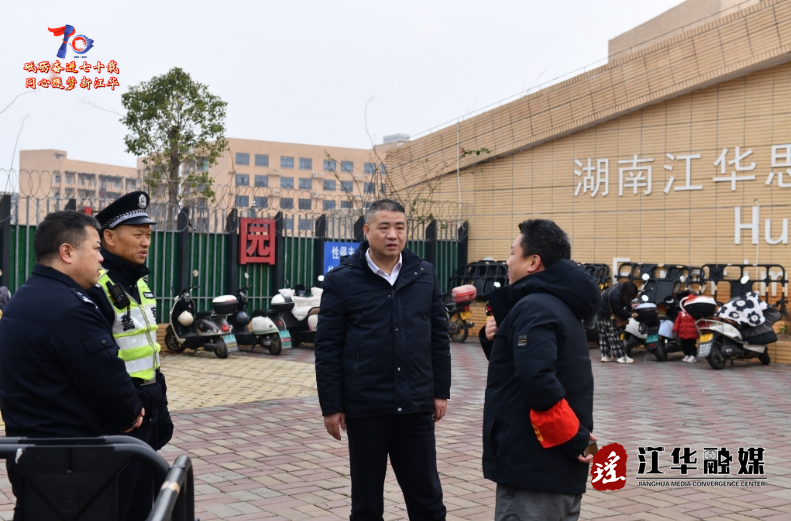 2月13日,江华副县长、县公安局局长李新建到辖区各学校实地督导检查校园安全防范设施建设工作。