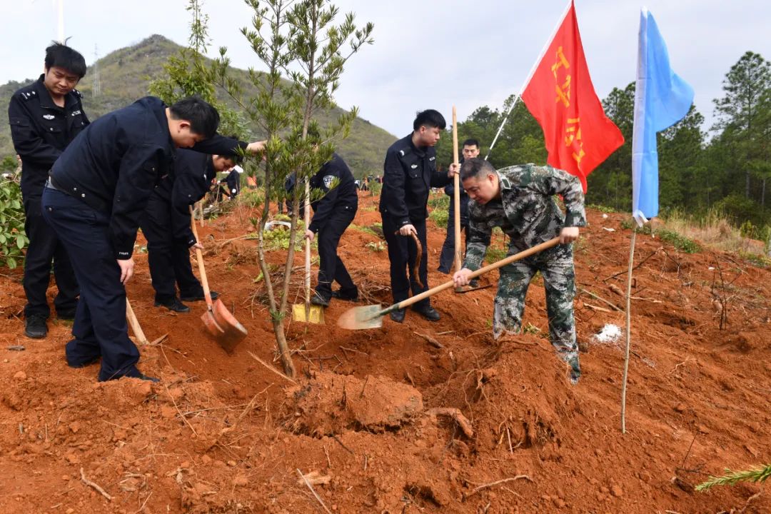 “藏蓝”植新绿 “警色”映忠诚——江华公安开展春季义务植树活动