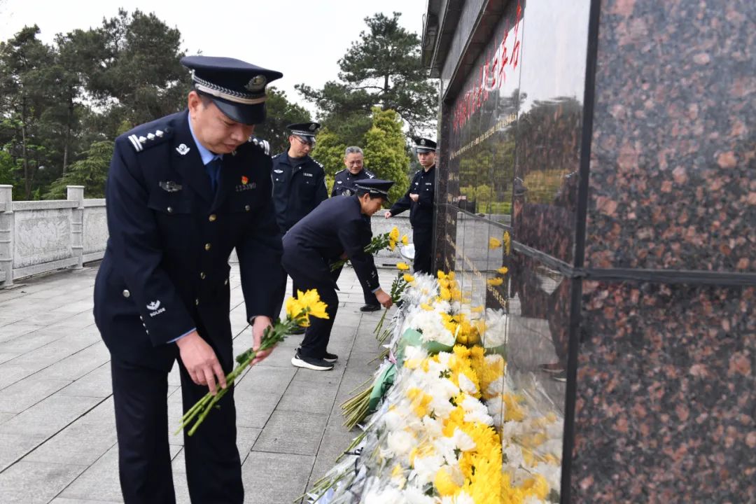 春日的烈士陵园松柏苍翠,人民英雄纪念碑巍然矗立。在三级高级警长袁英平的带领下,全体人员整齐列队,向长眠于此的革命先烈鞠躬默哀。三分钟的静默里,革命先辈抛头颅洒热血的峥嵘岁月仿佛重现眼前。