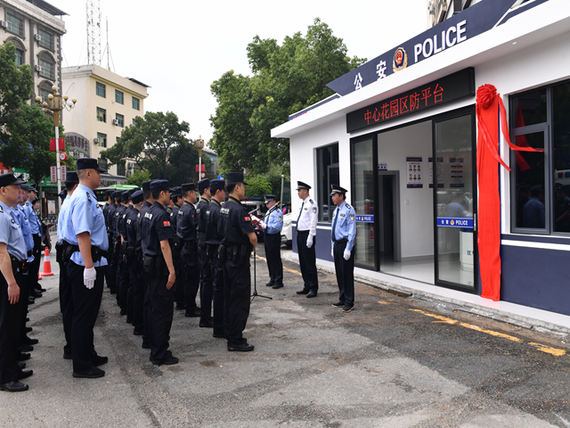 在启动仪式上,李新建同志对区防平台新址运行后提出了期许和要求。随后,在与会民警职工、辅警的共同见证下,一起为中心花园区防平台揭牌。崭新的警务标识在晨光中熠熠生辉,标志江华公安基层基础工作新面貌新起点。