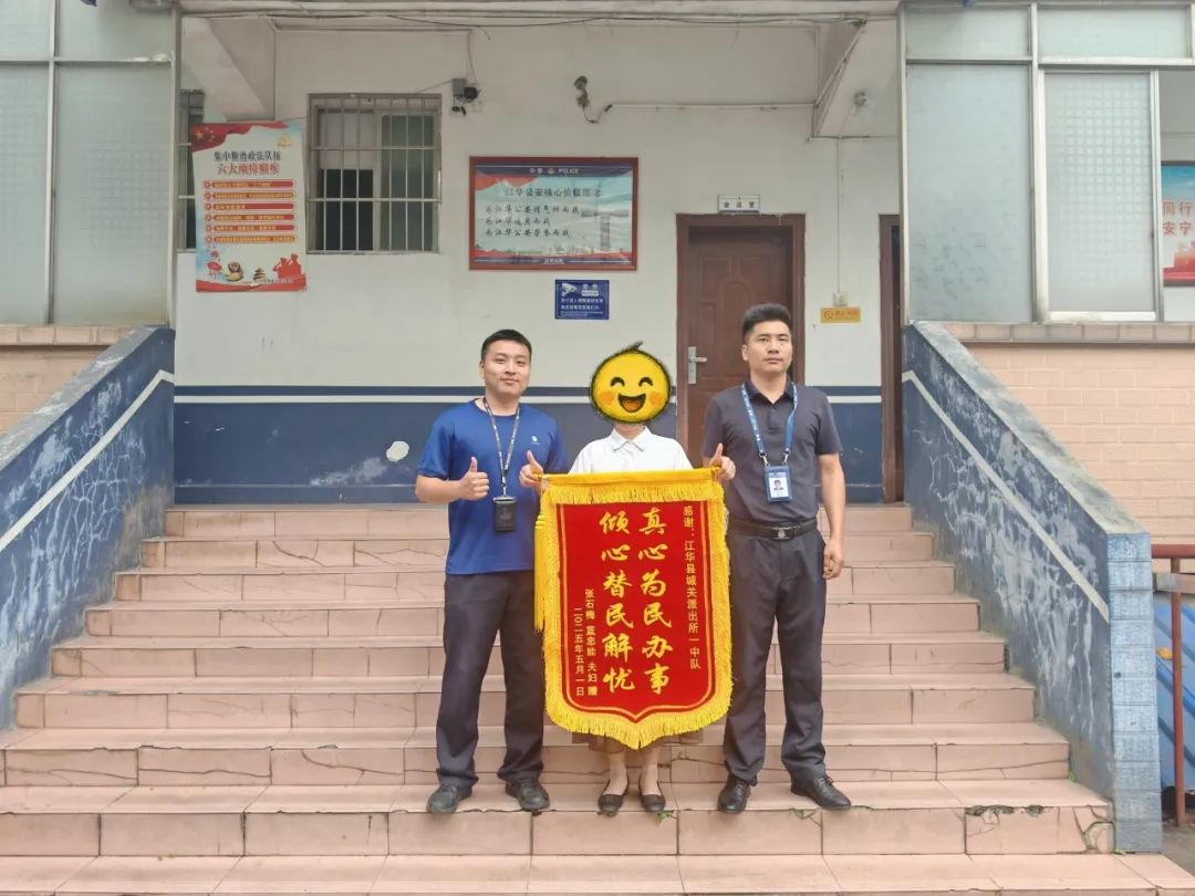 5月19日上午,江华瑶族自治县沱江镇居民张女士将一面印有“真心为民办事,倾心替民解忧”的锦旗送到城关派出所,向办案民警致谢:“原以为钱打了水漂,没想到警察同志居然跨省追了回来!”