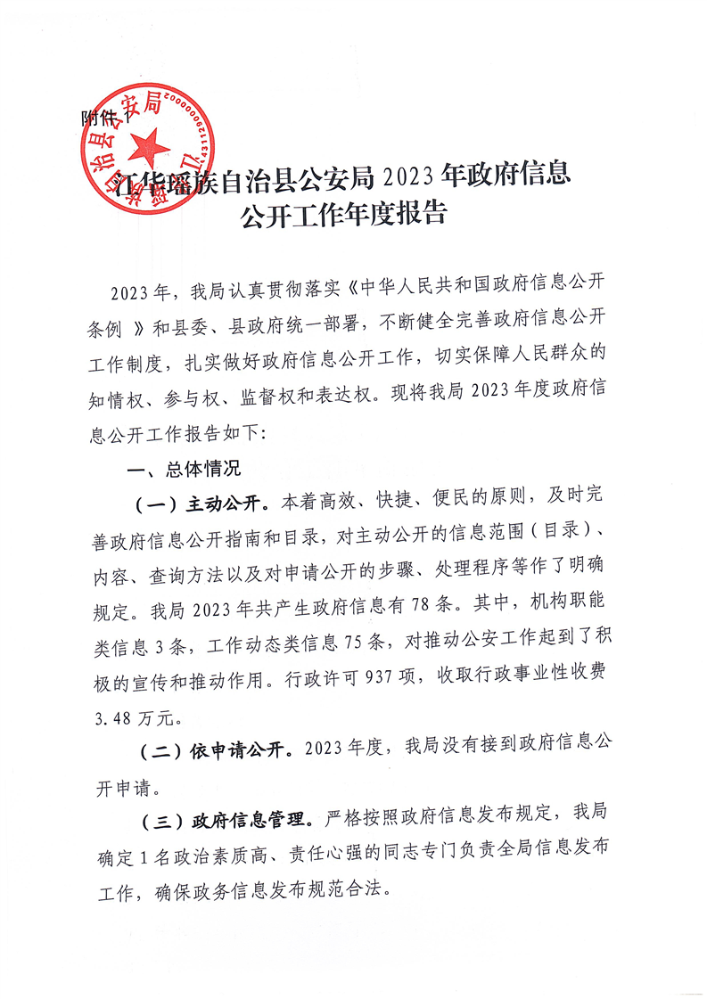 江华瑶族自治县公安局2023年政府信息公开工作年度报告