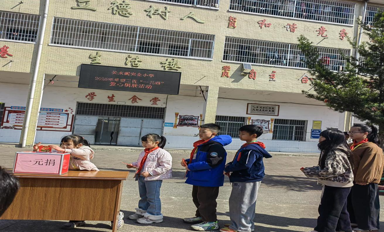 “捐一元钱,可以帮助困难的小伙伴”“我少买点零食,捐五元吧!”3月19日上午,江华瑶族自治县河路口镇关水阁完全小学校园里传来了阵阵捐助的爱心之声,该校积极响应镇团委号召,组织全体师生筹划开展了2025年希望工程“一元捐”活动。