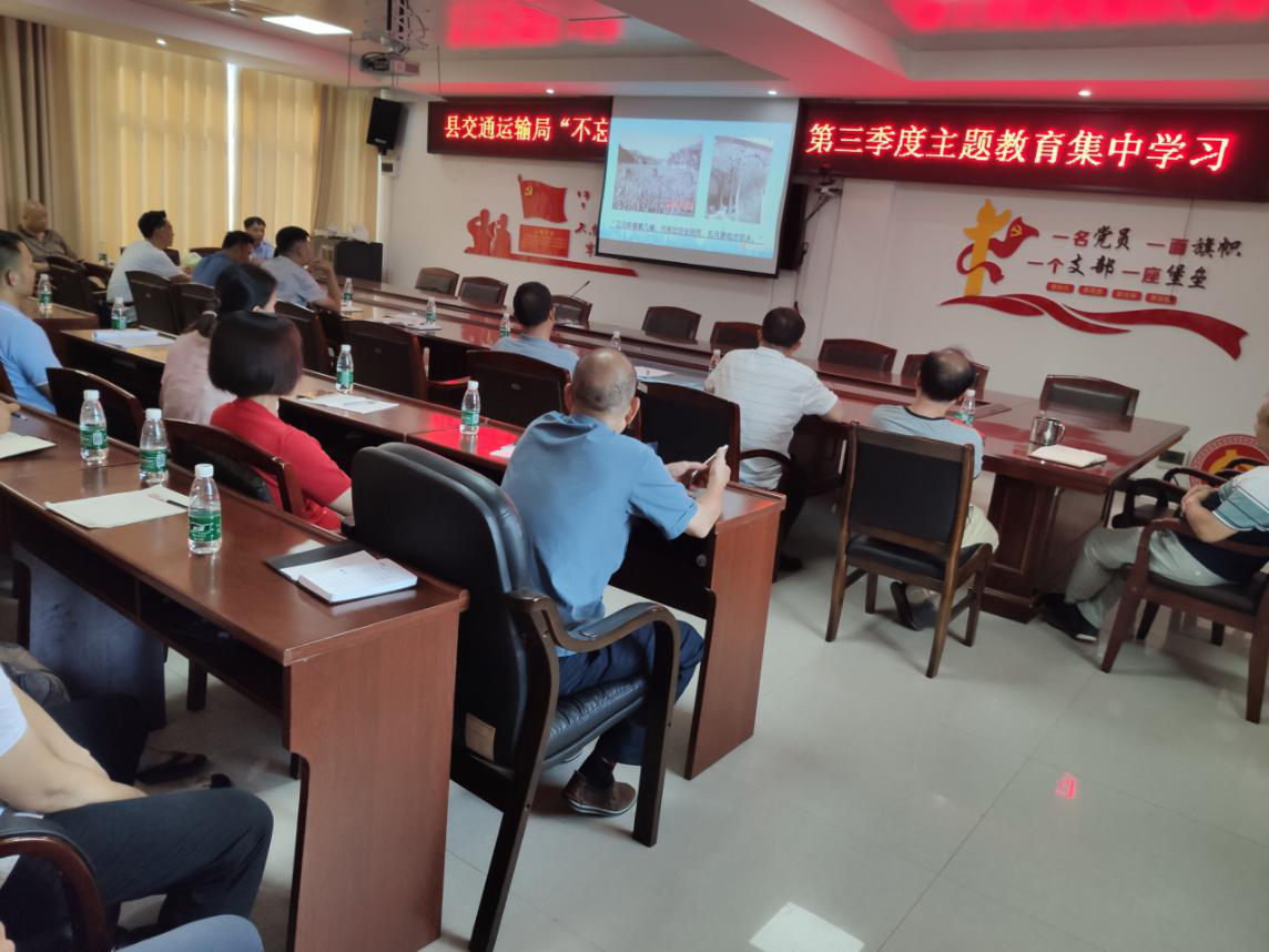 7月31日,江华瑶族自治县交通运输局开展2020年第三季度"不忘初心,牢记使命"主题教育集中学习,特邀市人大常委会委员、民族华侨外事委员会主任周龙江作题为《不忘初心使命,实现民族复兴》的专题讲座,县交通运输局党组书记、局长颜德彪主持学习并讲话,该局在家的党组班子成员和党员干部职工参加。