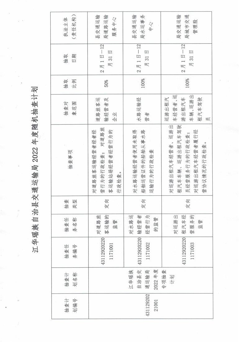 江华瑶族自治县交通运输局关于印发《江华瑶族自治县交通运输局2022年度随机抽查计划》的通知