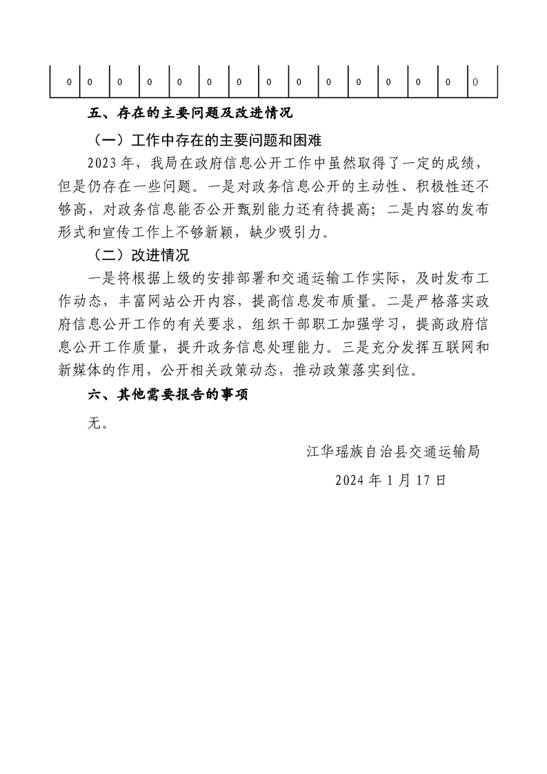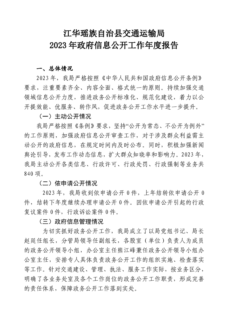 江华瑶族自治县交通运输局2023年政府信息公开工作年度报告