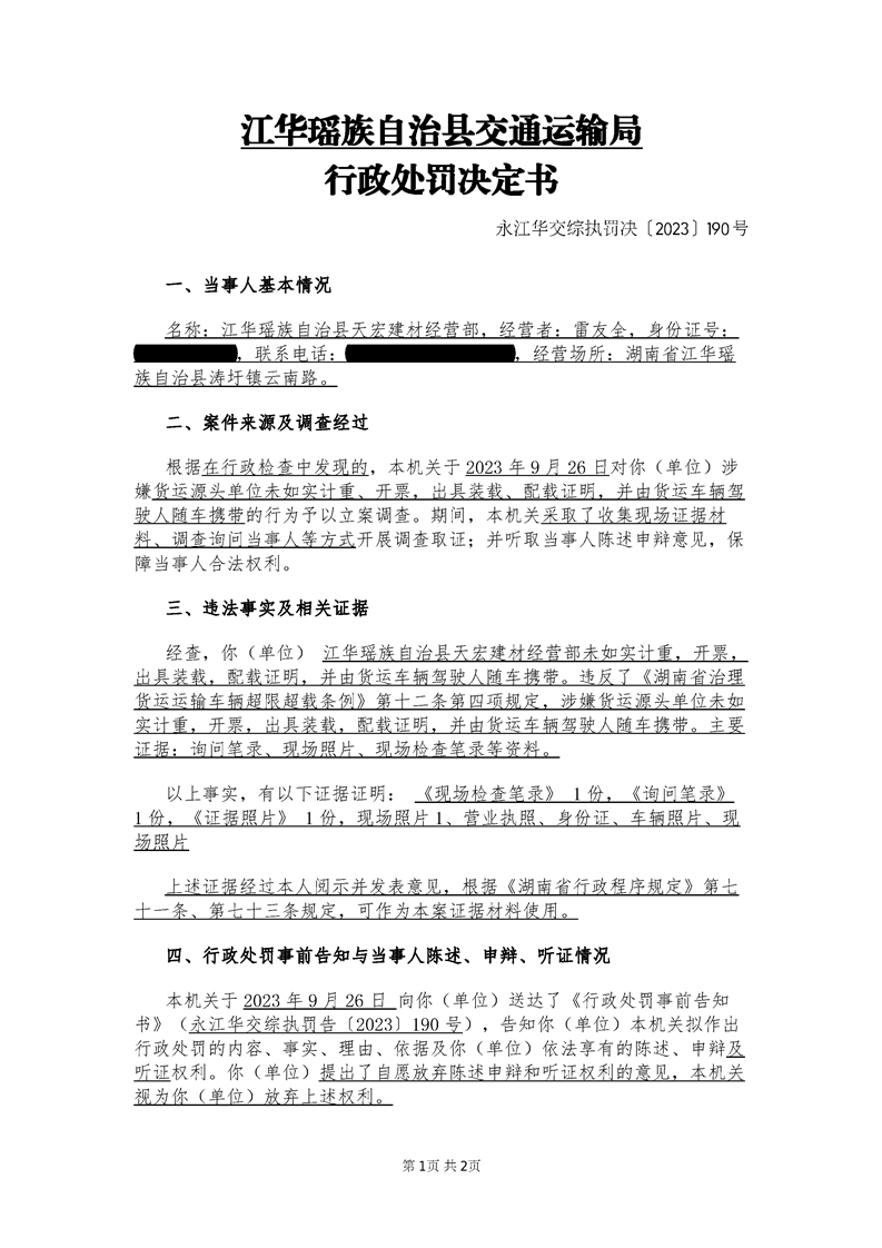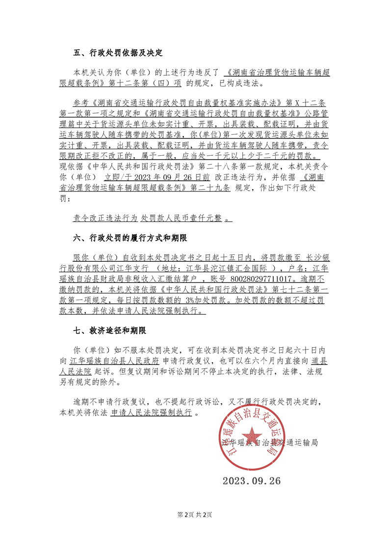 永江华交综执罚决〔2023〕190号
