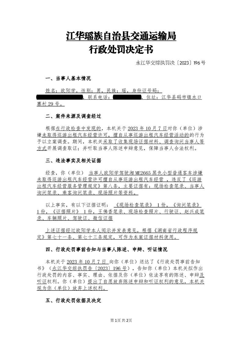永江华交综执罚决〔2023〕196号
