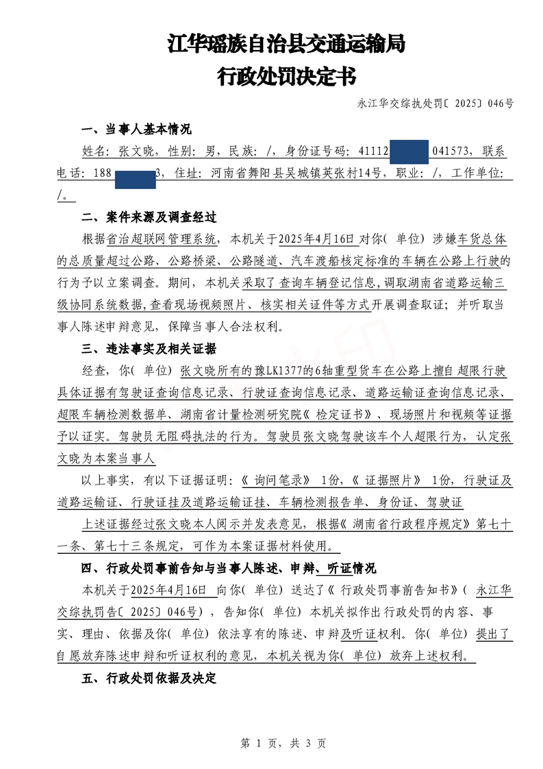 永江华交综执处罚〔2025〕046号