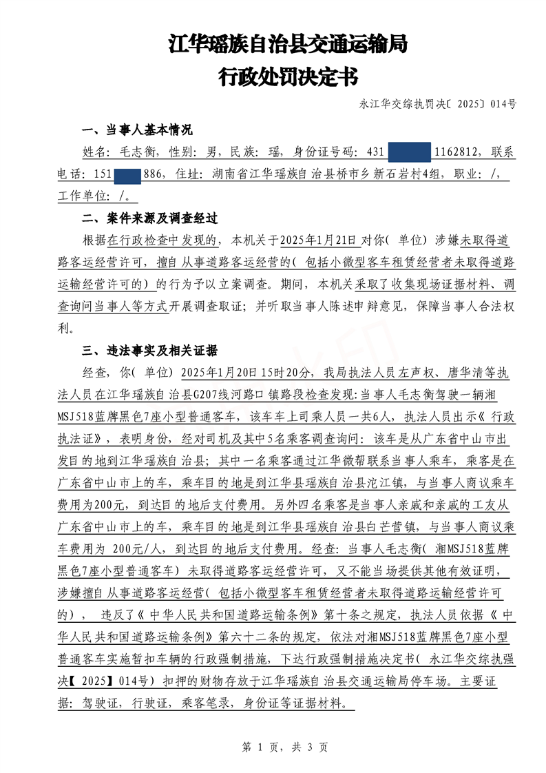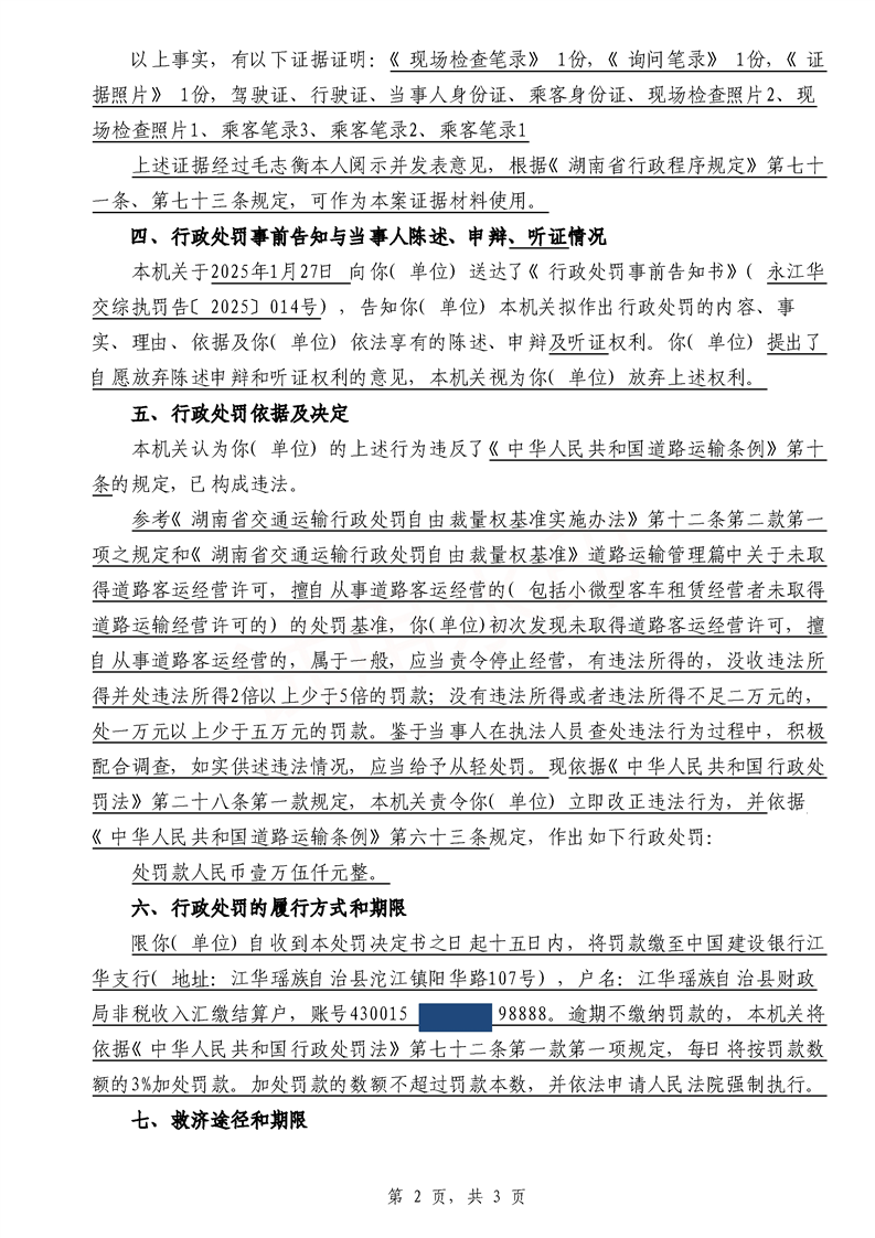 永江华交综执罚决〔2025〕014号