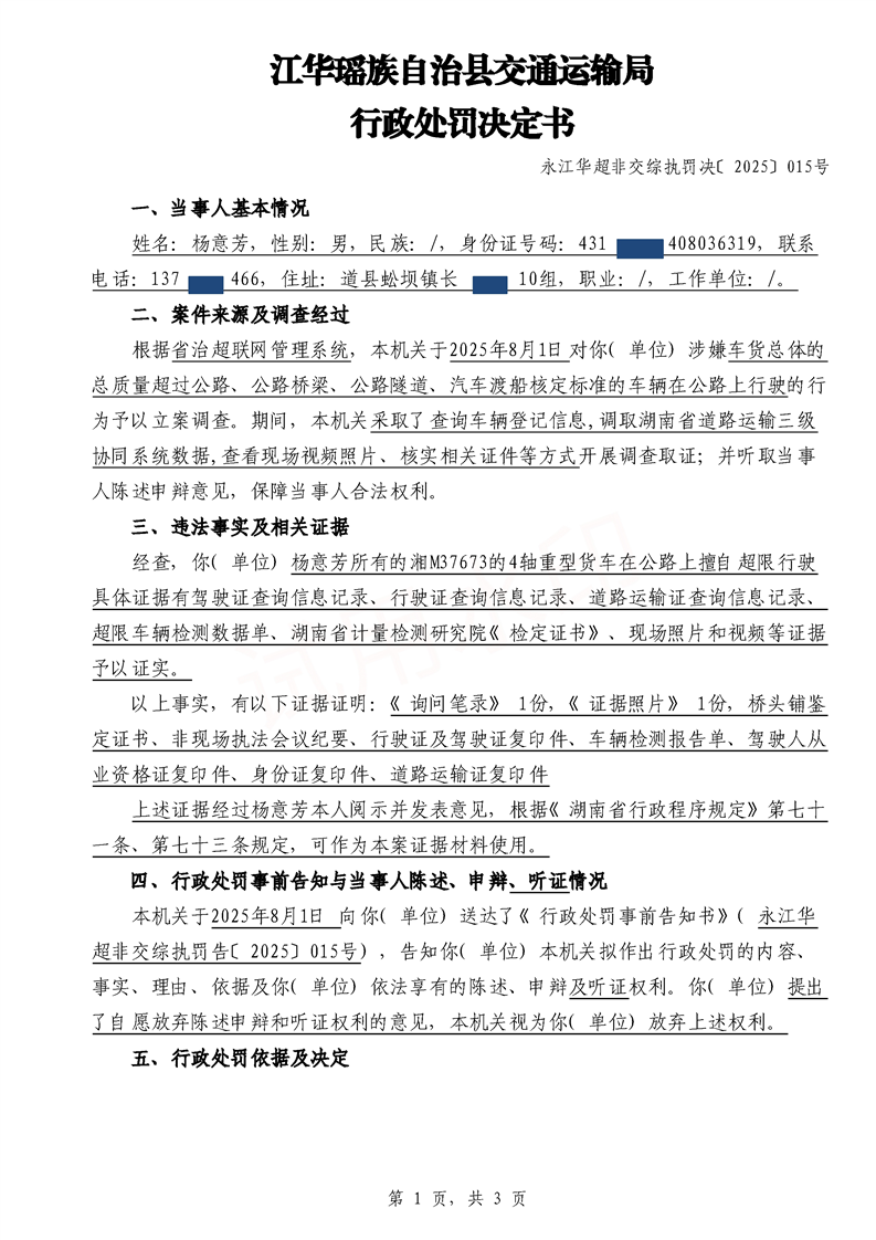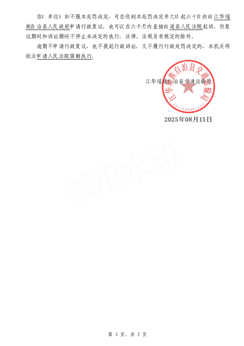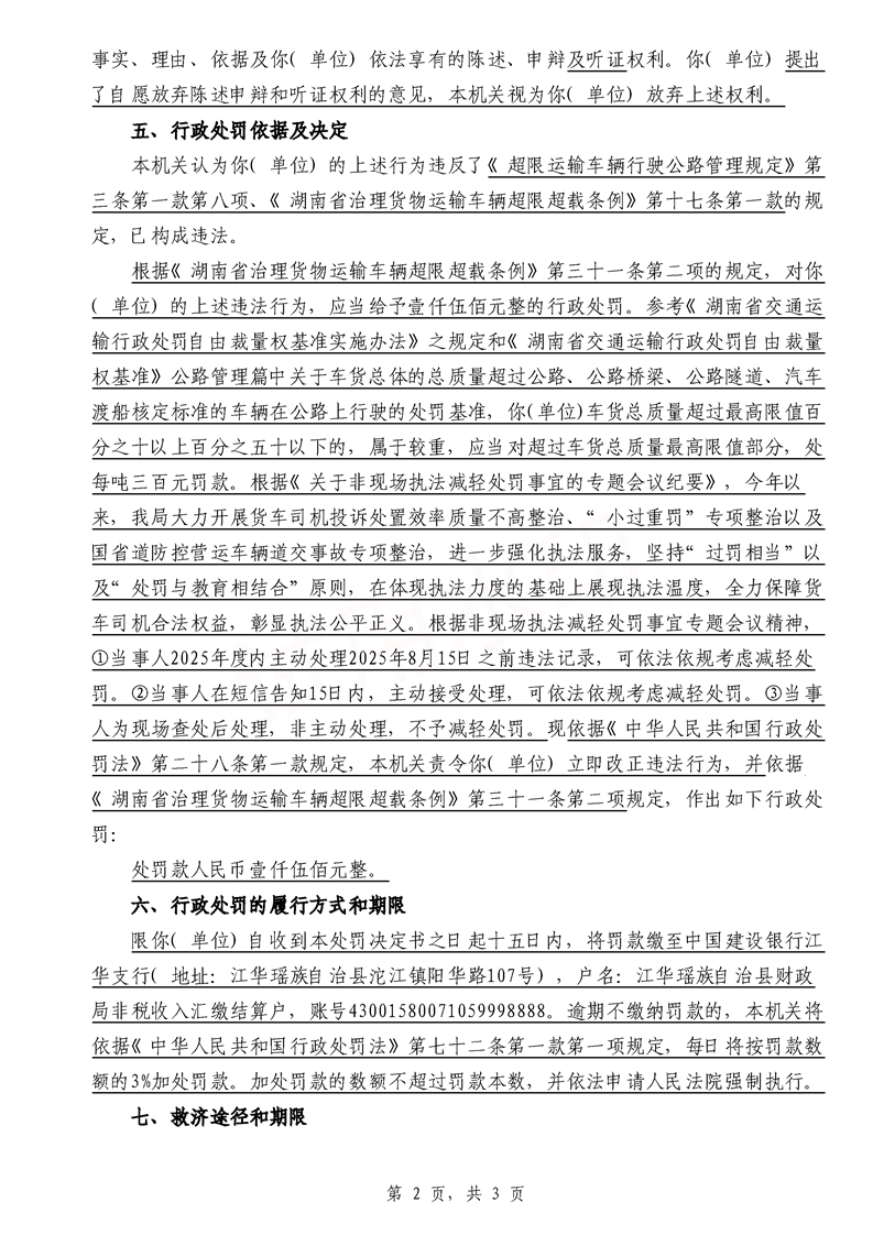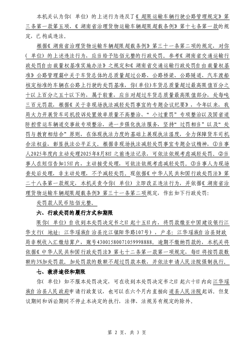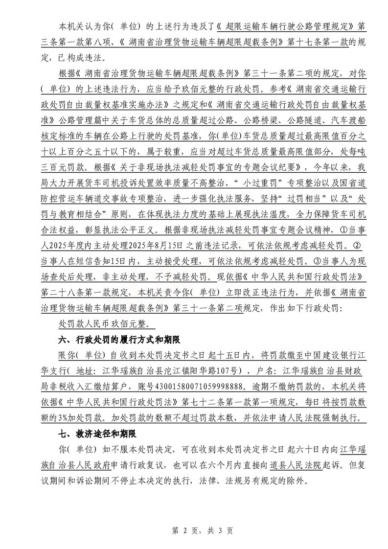 永江华超非交综执罚决〔2025〕015-021号