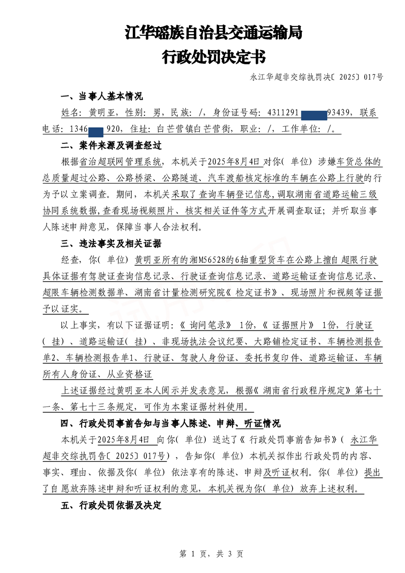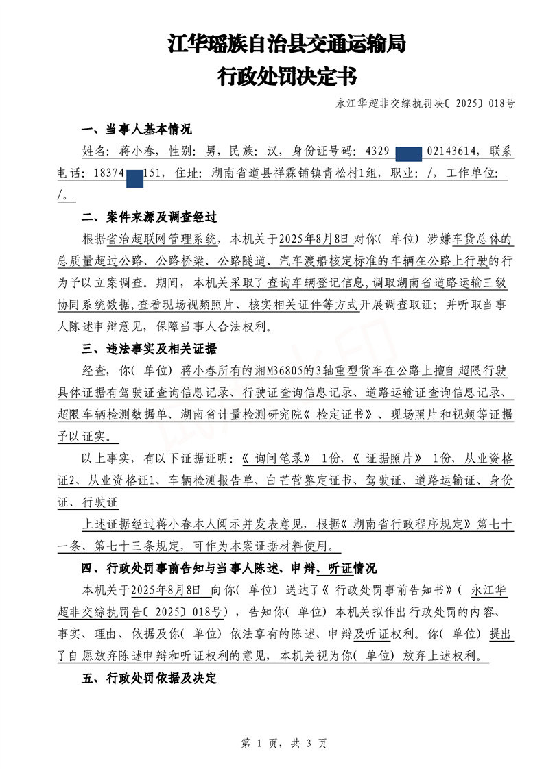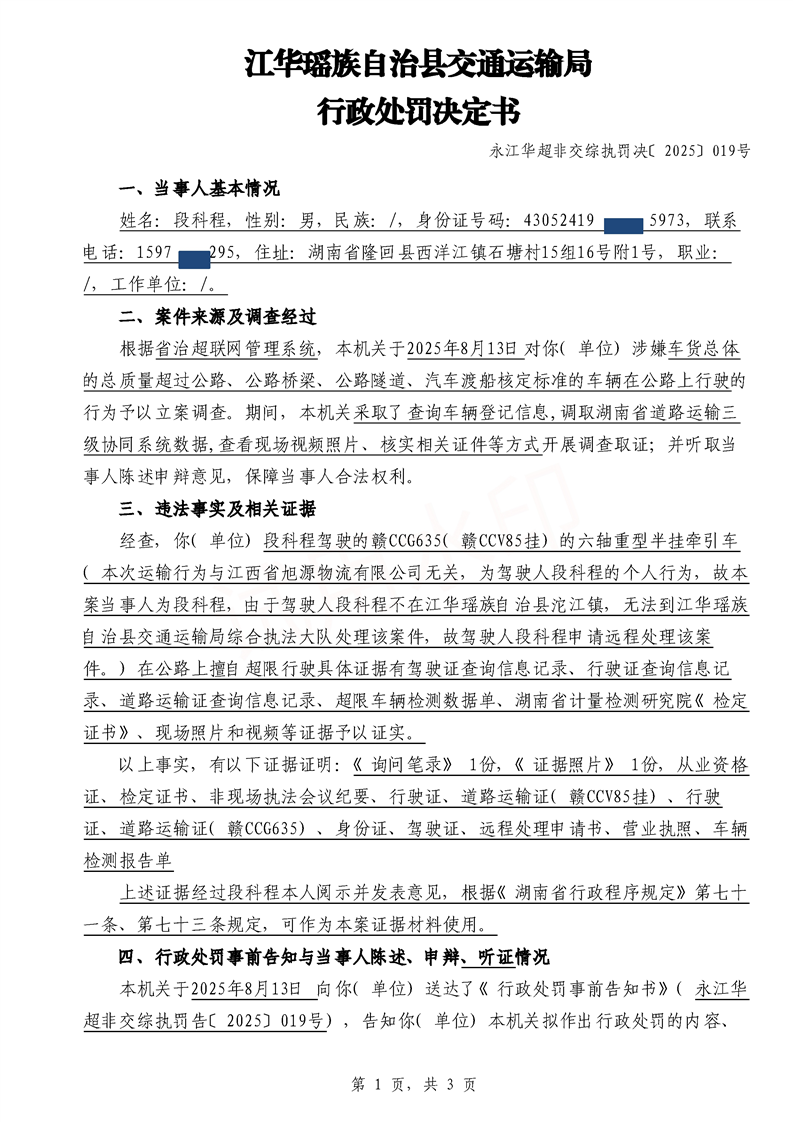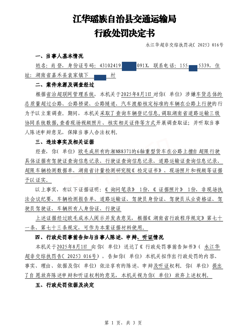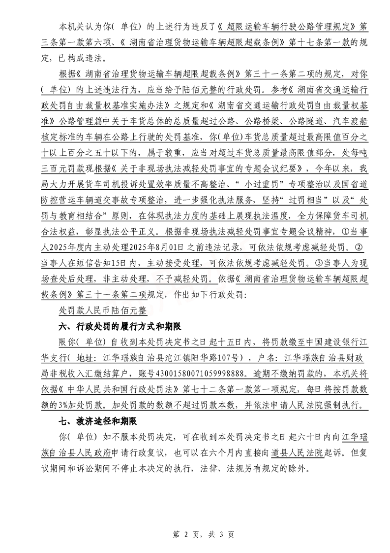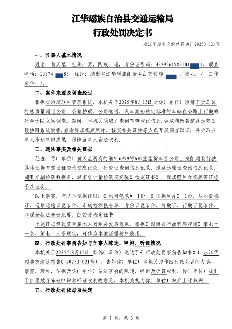 永江华超非交综执罚决〔2025〕015-021号