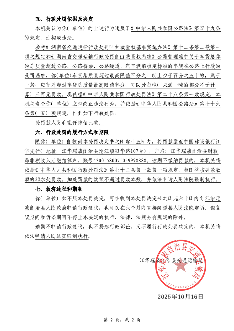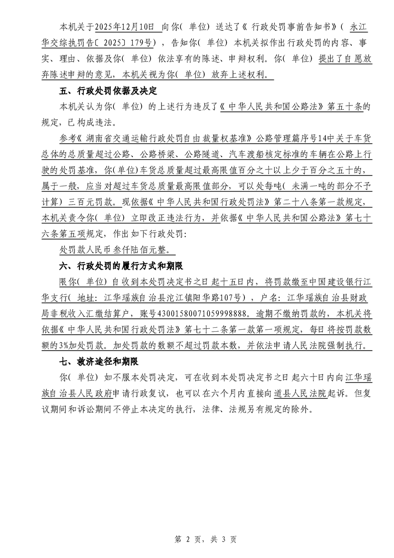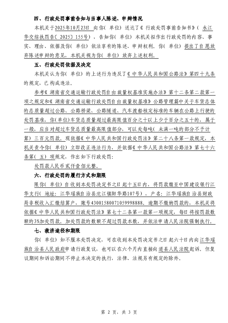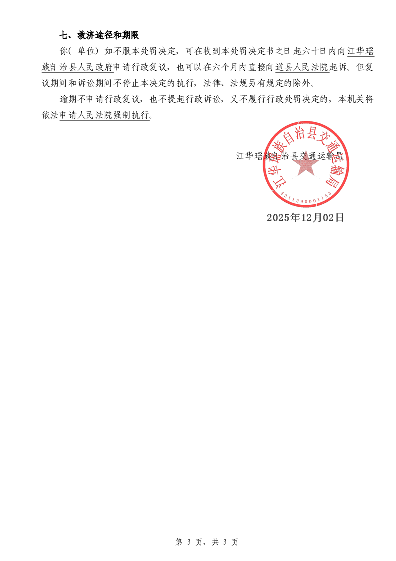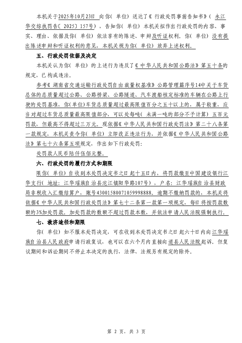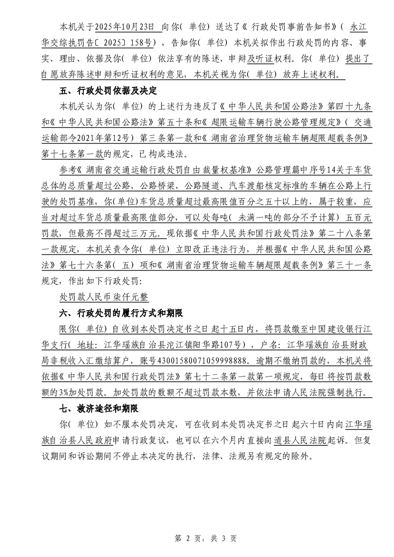 永江华交综执罚决 〔2025〕137-194号