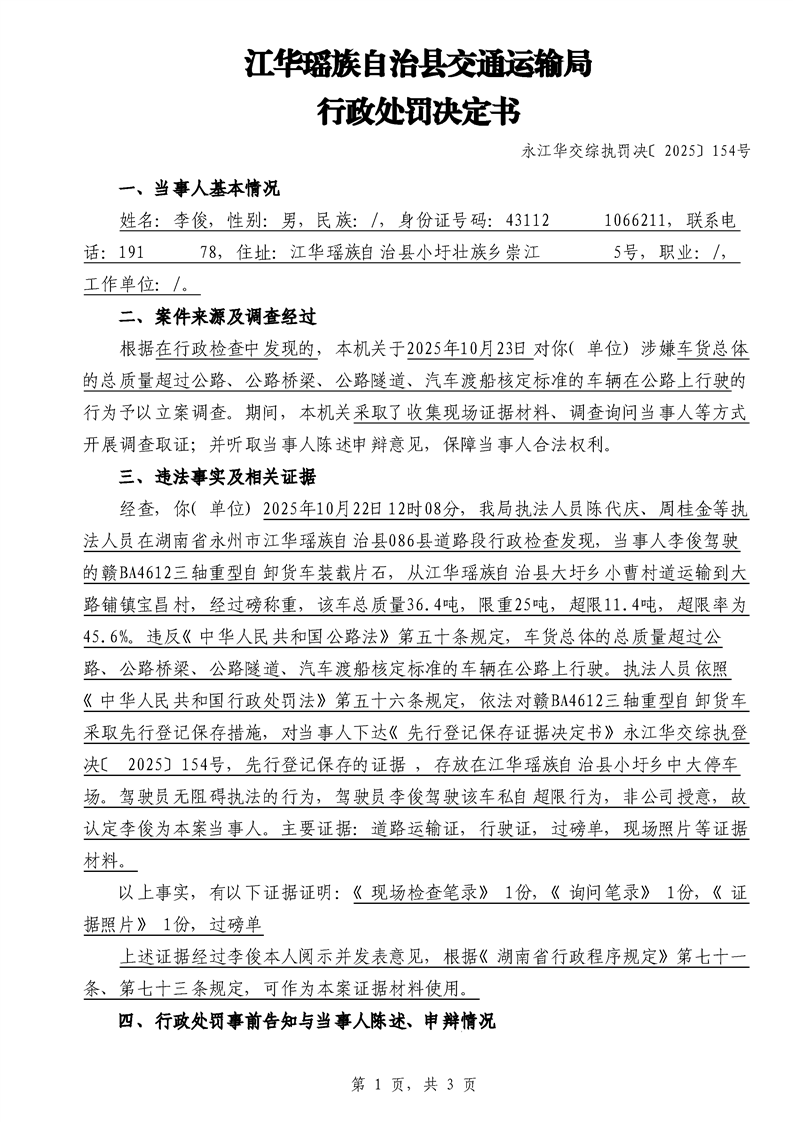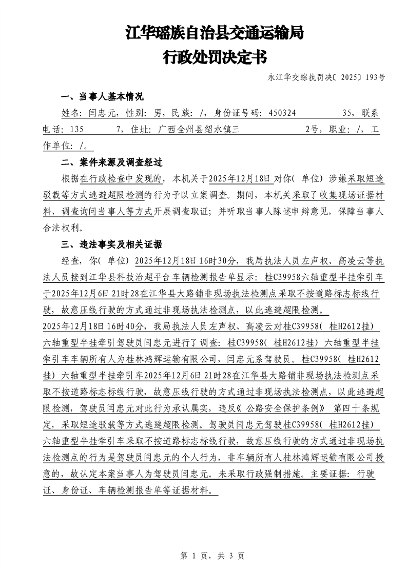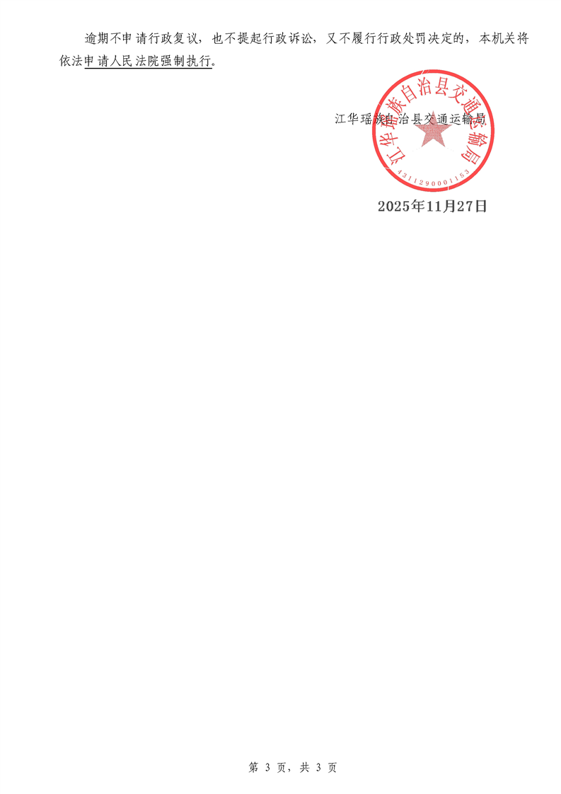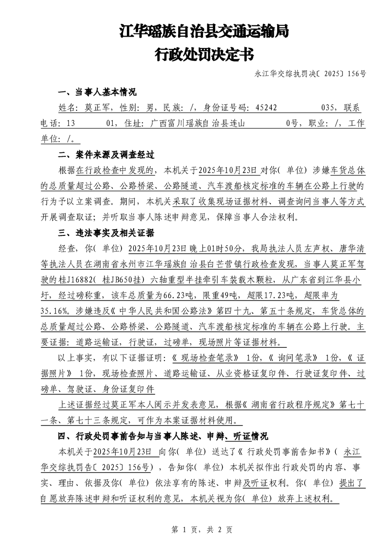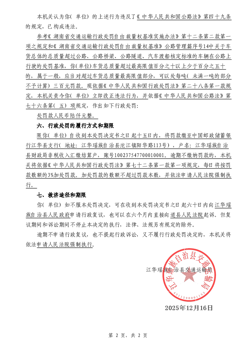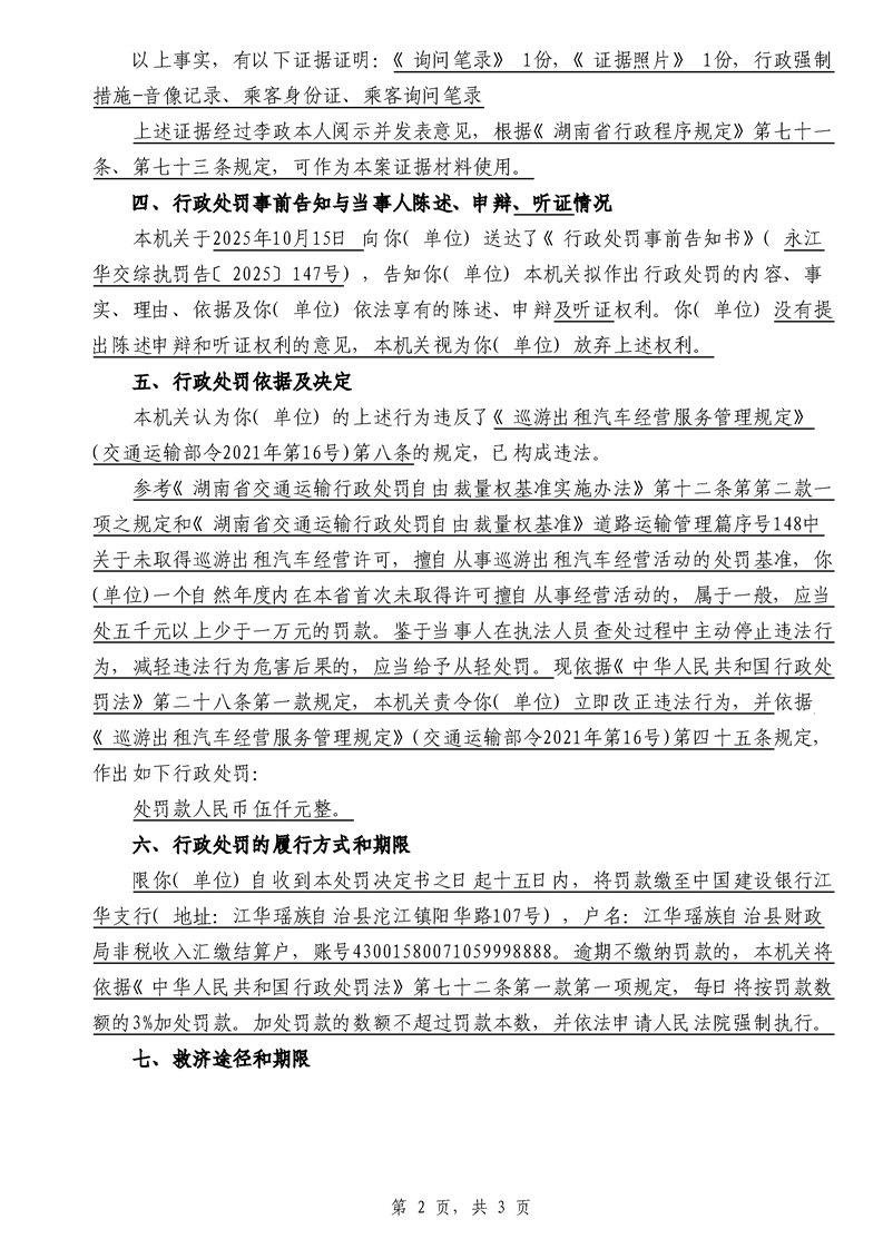 永江华交综执罚决 〔2025〕137-194号
