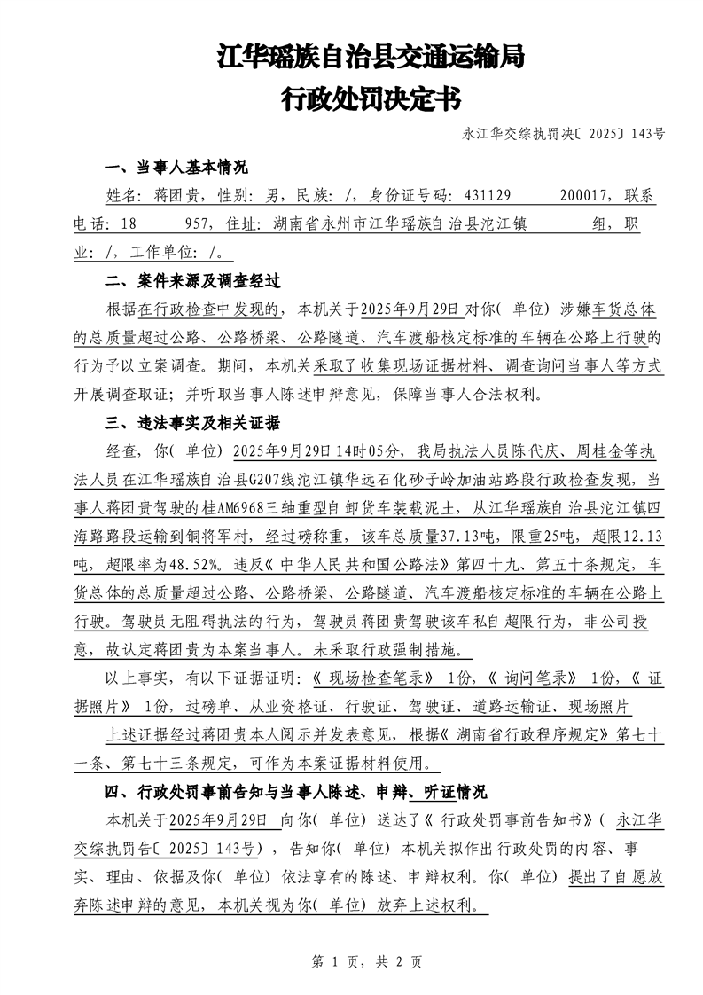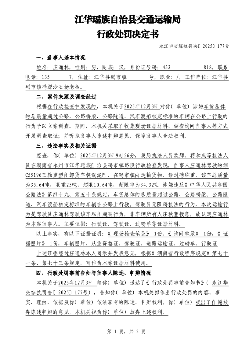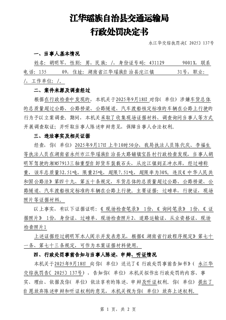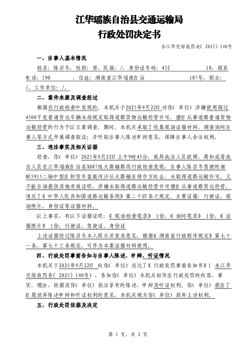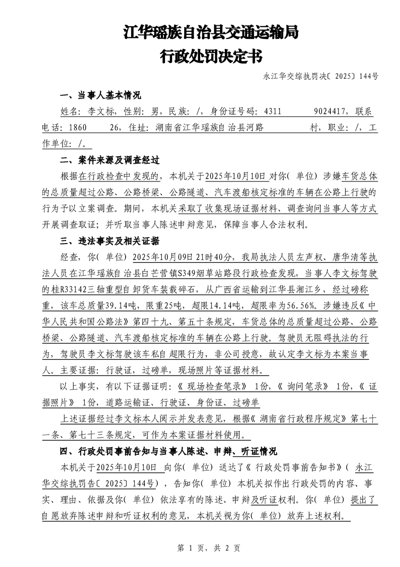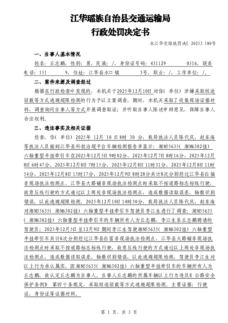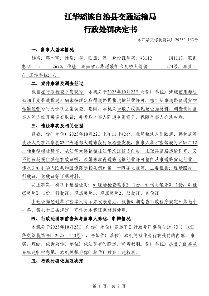 永江华交综执罚决 〔2025〕137-194号