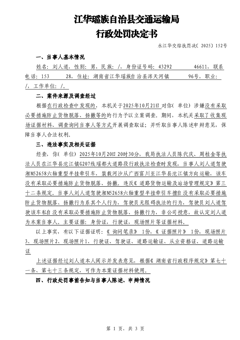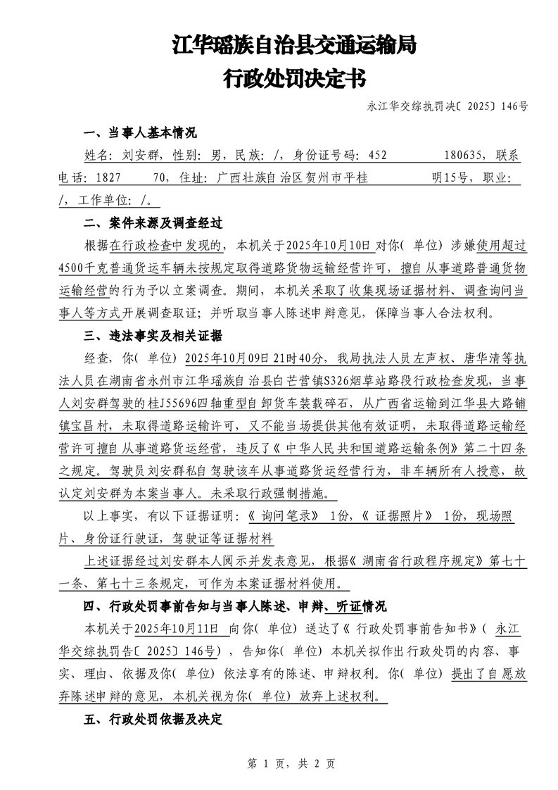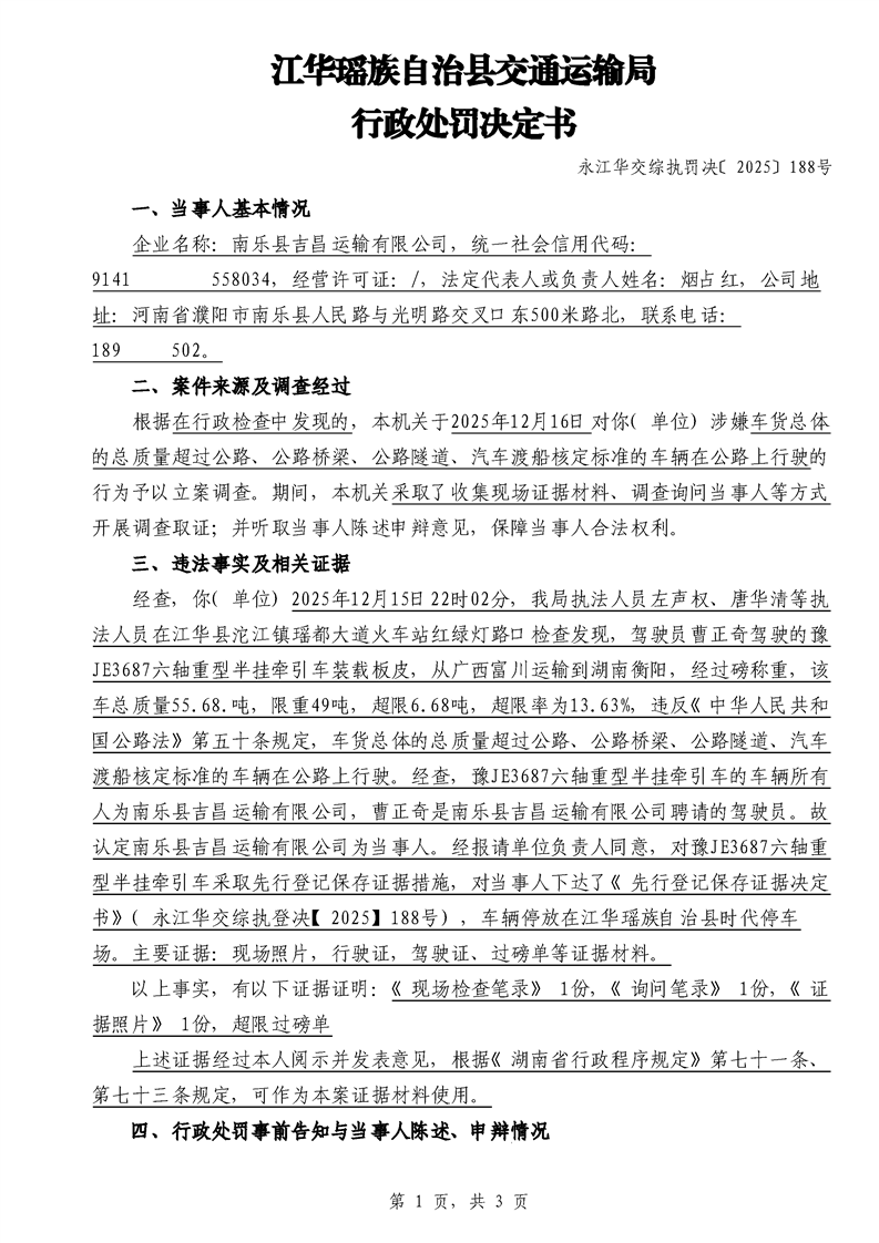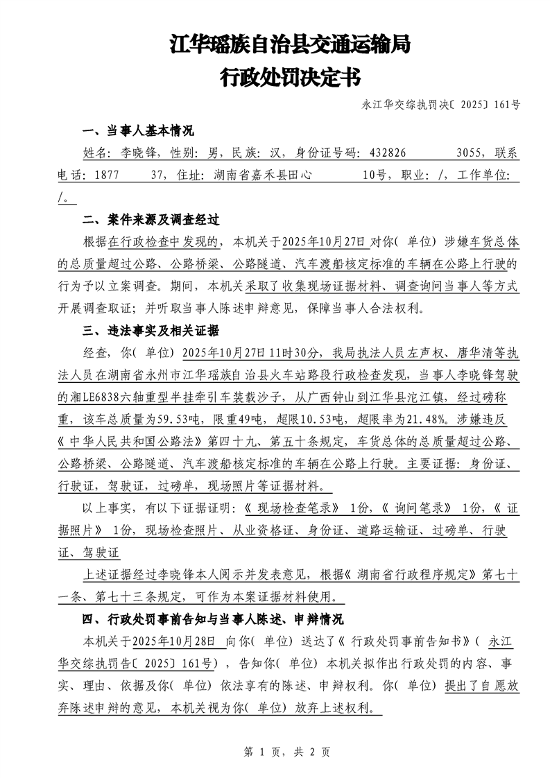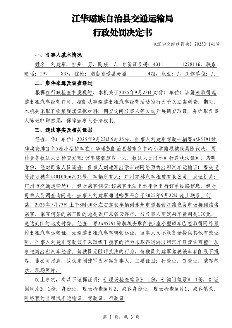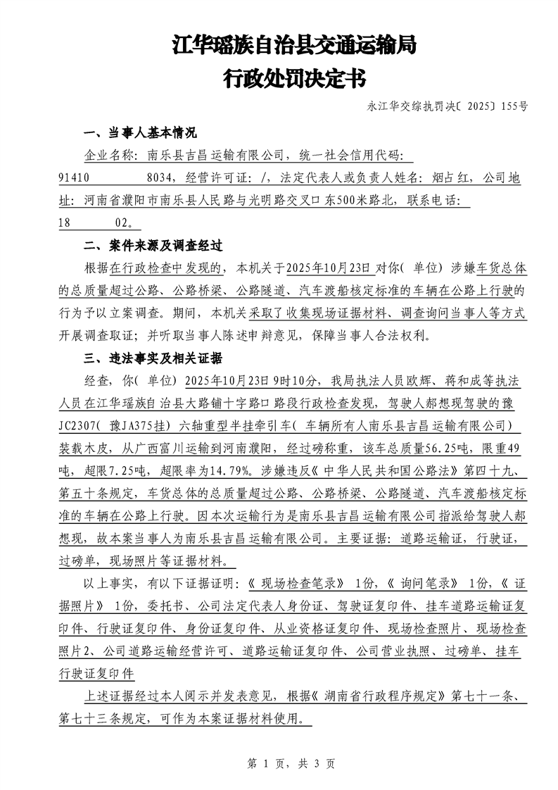 永江华交综执罚决 〔2025〕137-194号