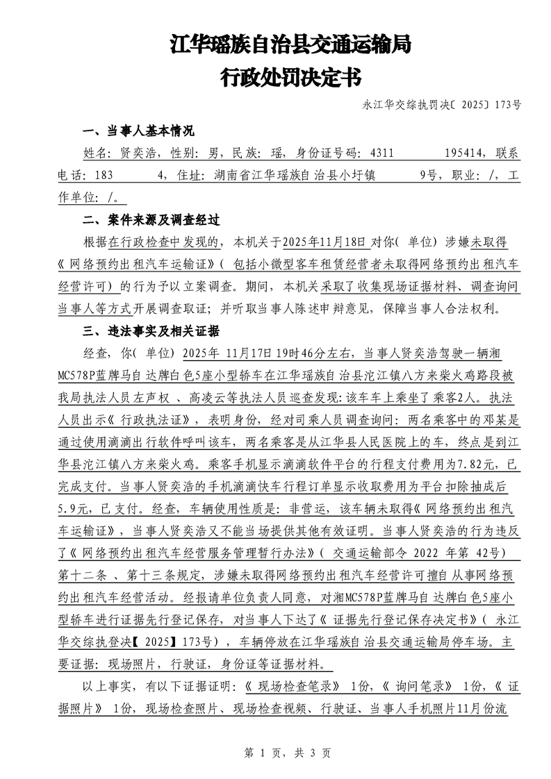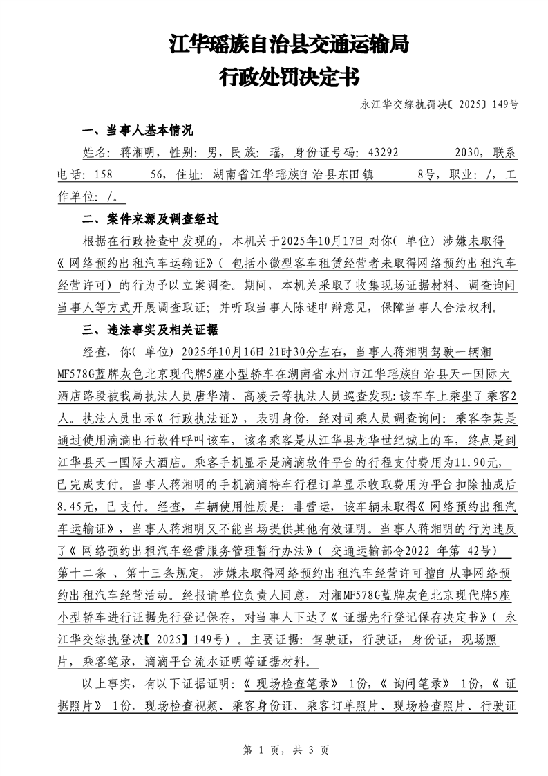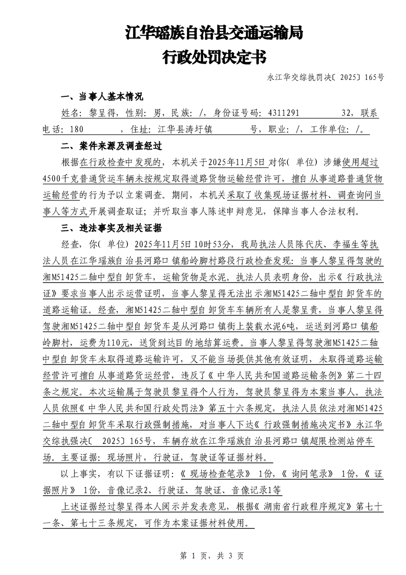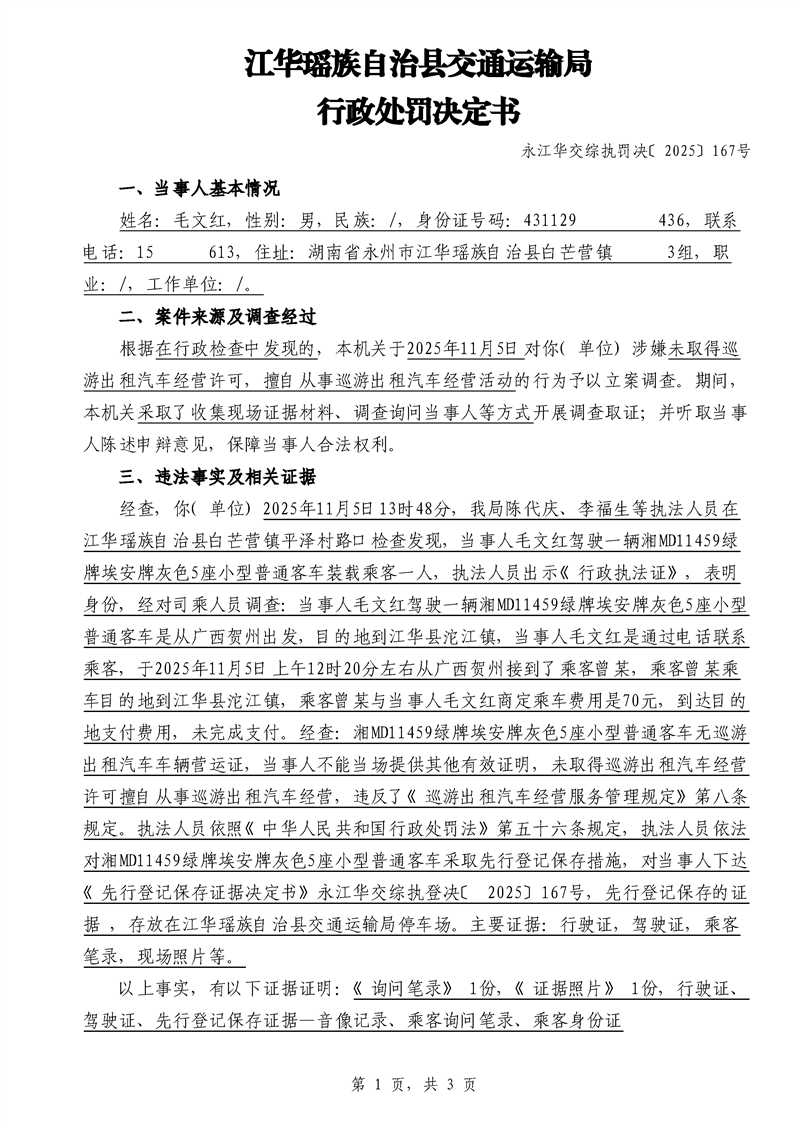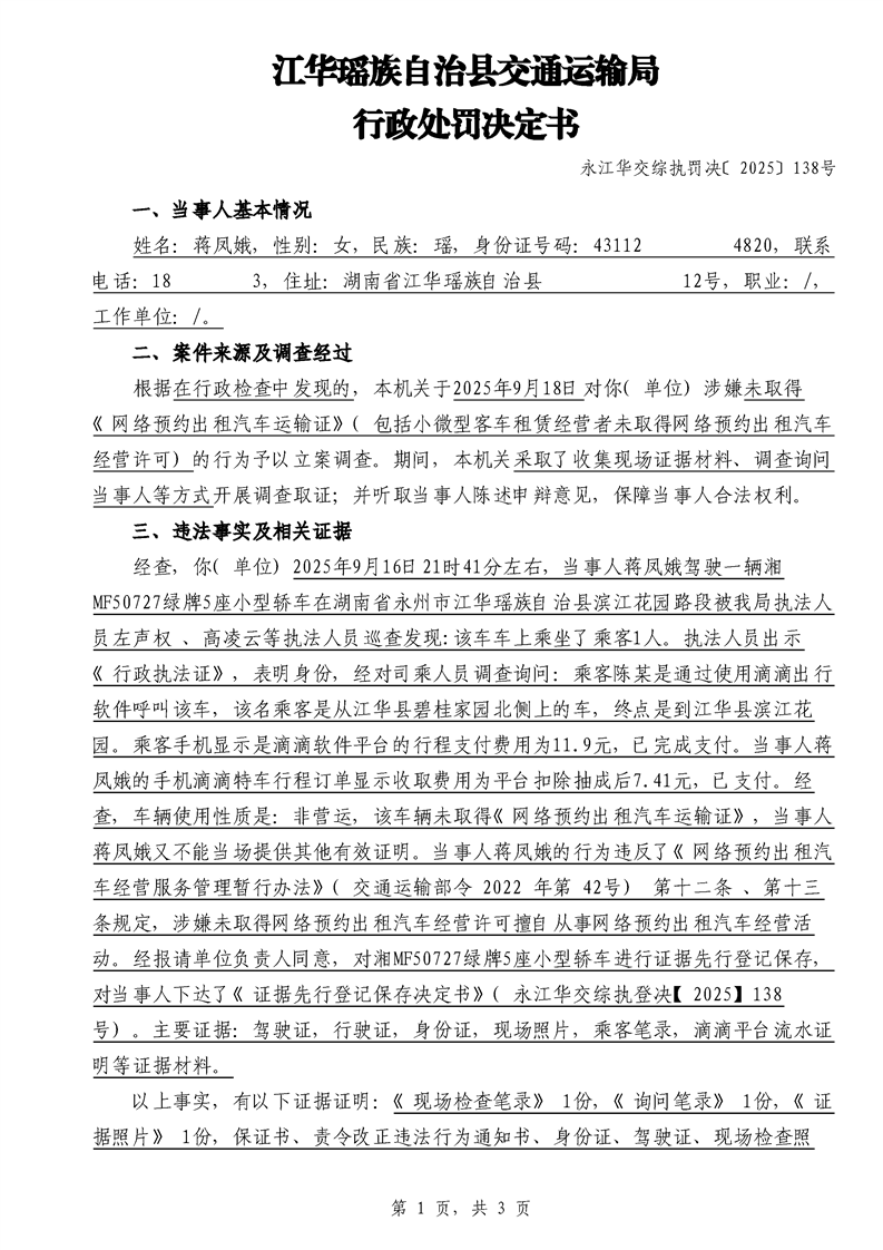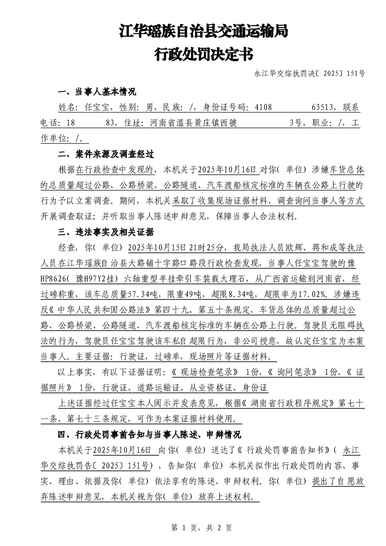 永江华交综执罚决 〔2025〕137-194号