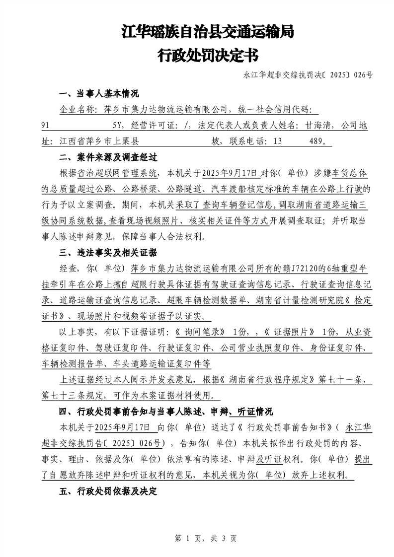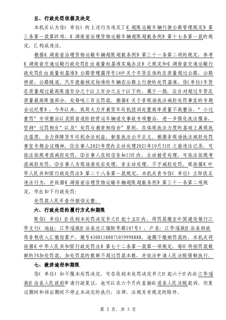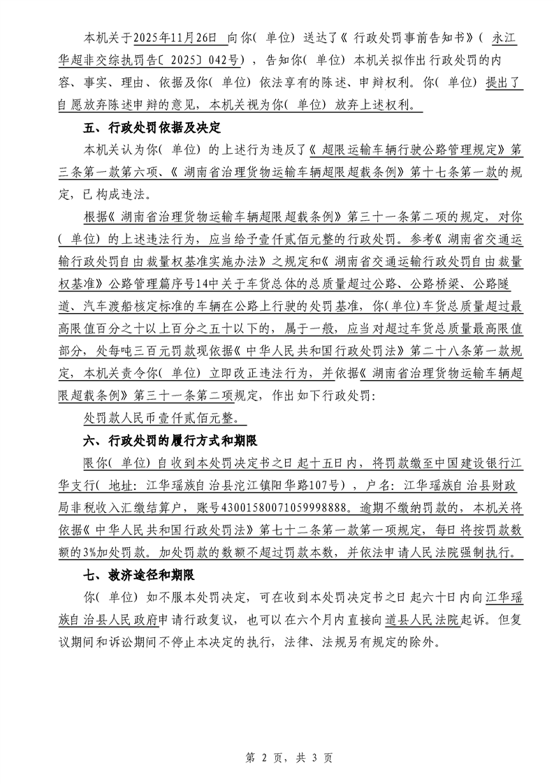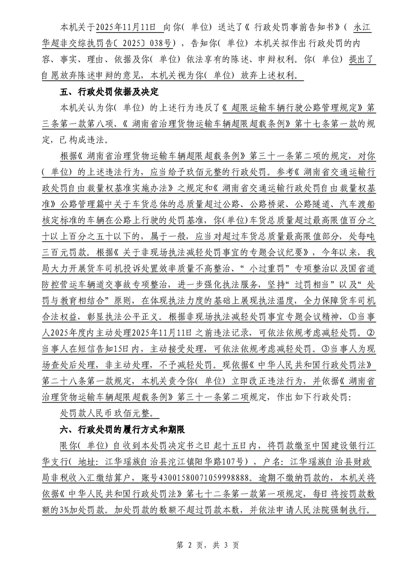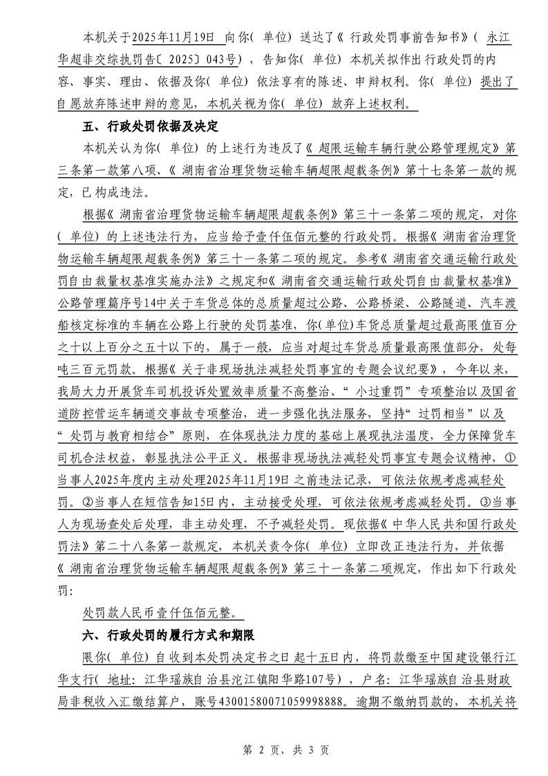 江华超非交综执罚决〔2025〕022号-044号