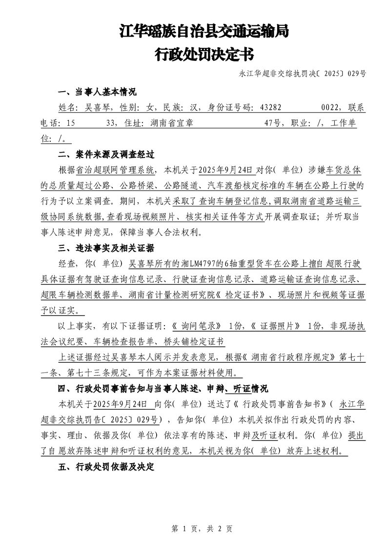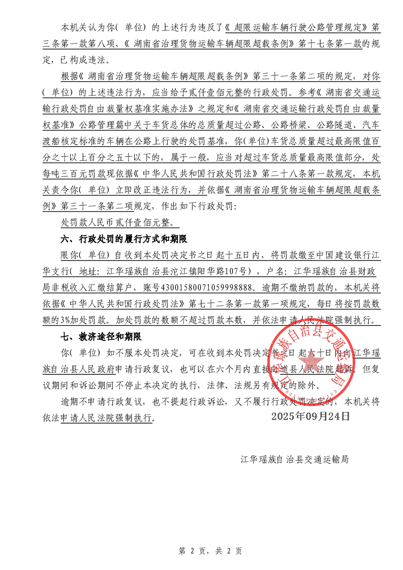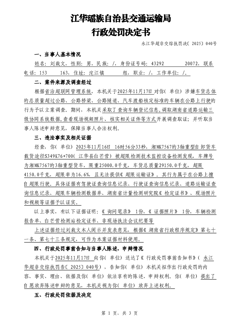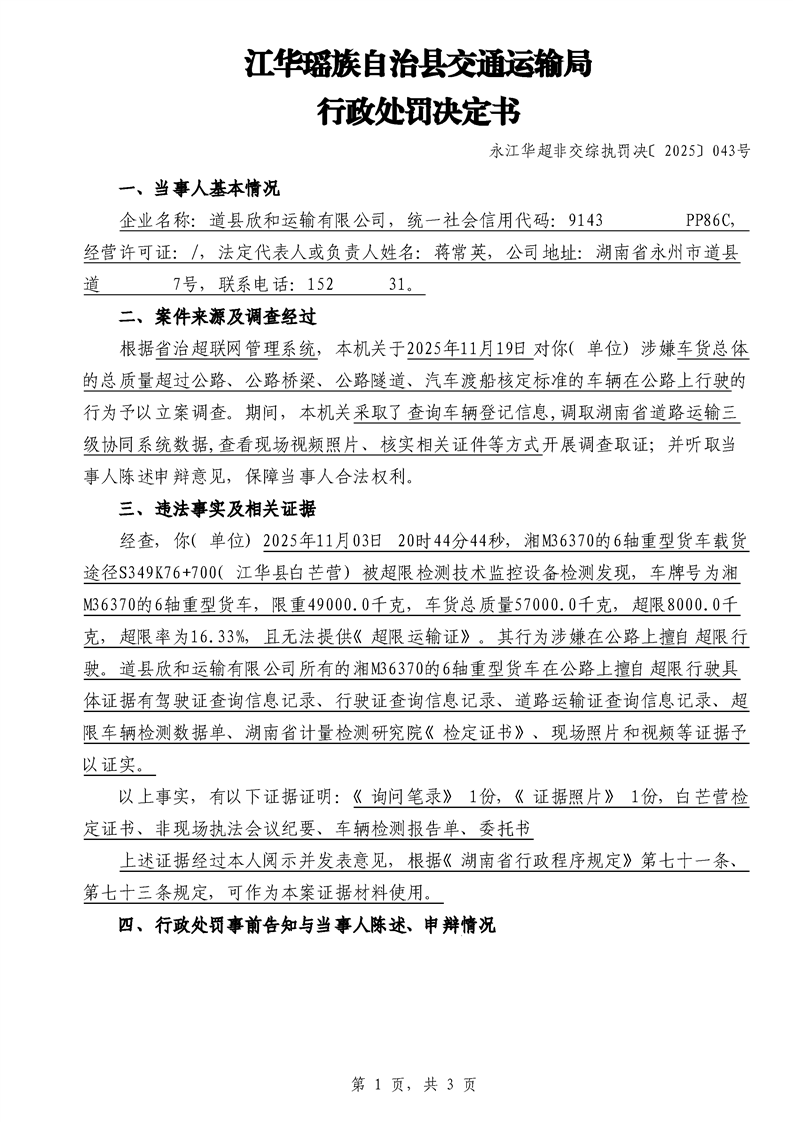 江华超非交综执罚决〔2025〕022号-044号
