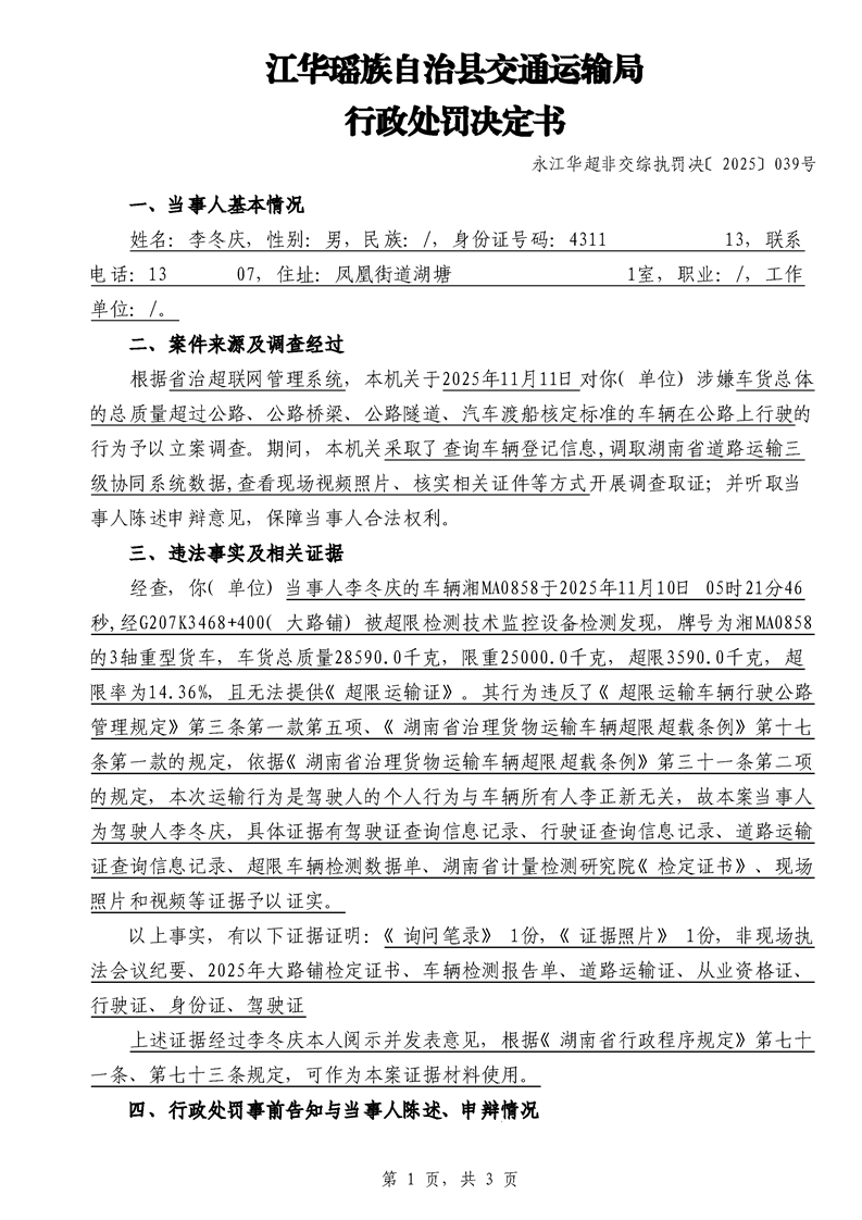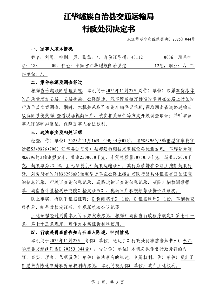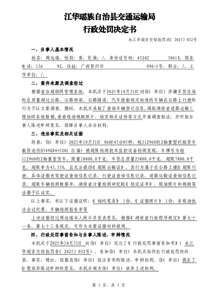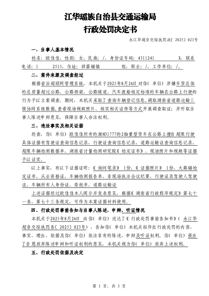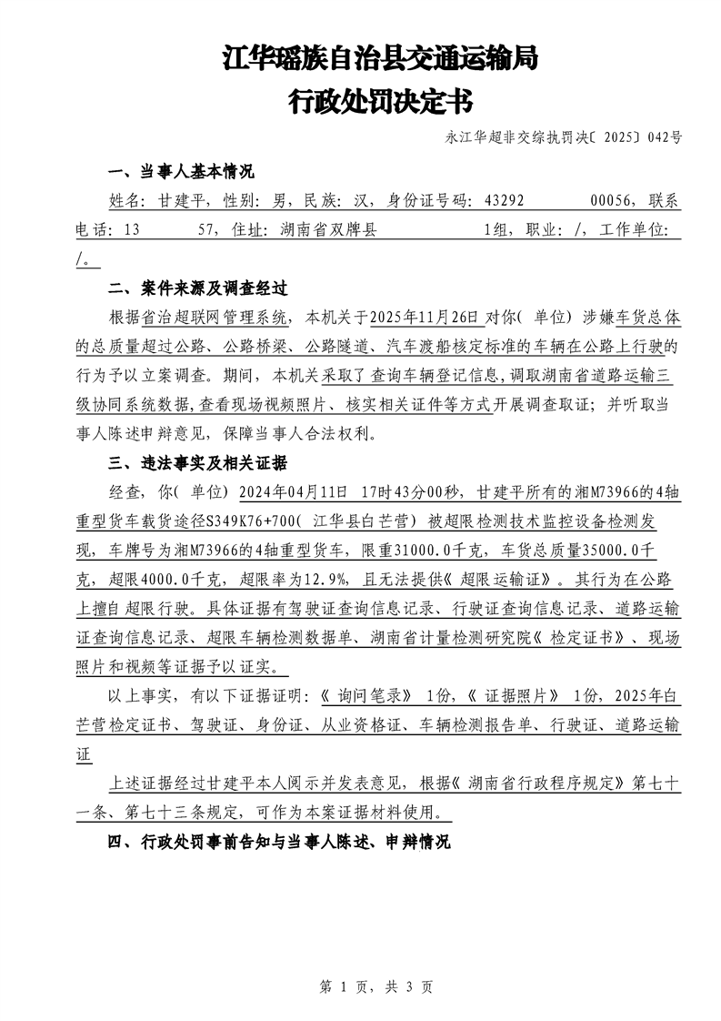 江华超非交综执罚决〔2025〕022号-044号