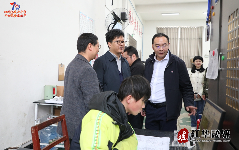 李飞一行先后来到江华职业中专新校区及老校区参观,了解新校区的规划布局、建设进展及学校的专业设置、实训基地建设、产教融合等情况,并详细询问研究生支教团到岗后的教学工作开展及生活保障情况。