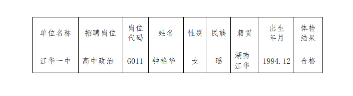 江华瑶族自治县教育系统关于钟艳华同志体检补检结果公示