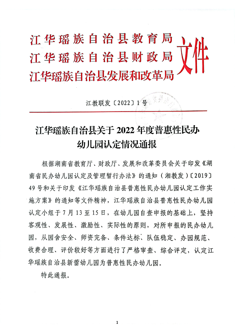 江华瑶族自治县关于2022年度普惠性民办幼儿园认定情况通报