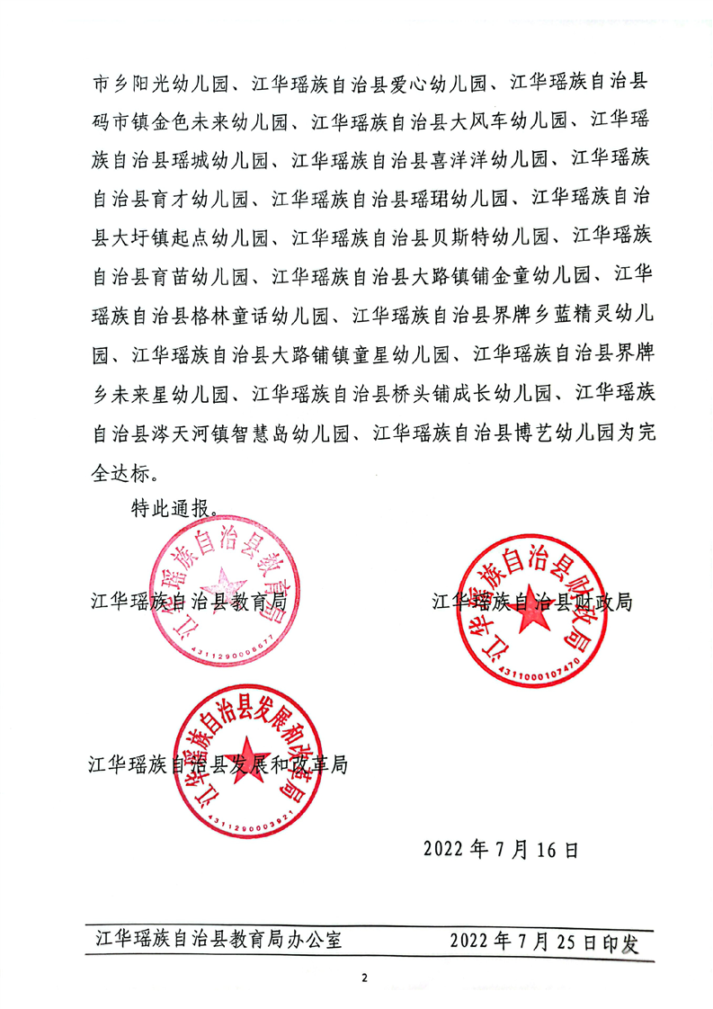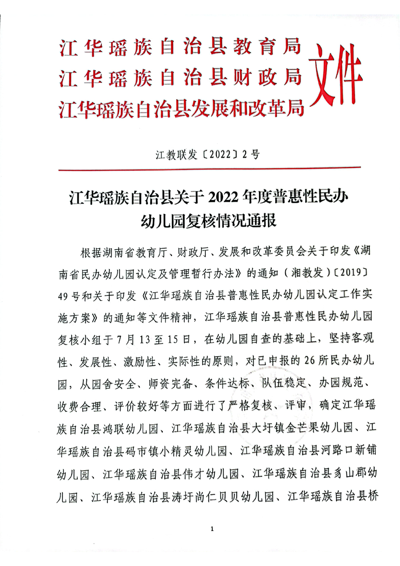 江华瑶族自治县关于2022年度普惠性民办幼儿园复核情况通报