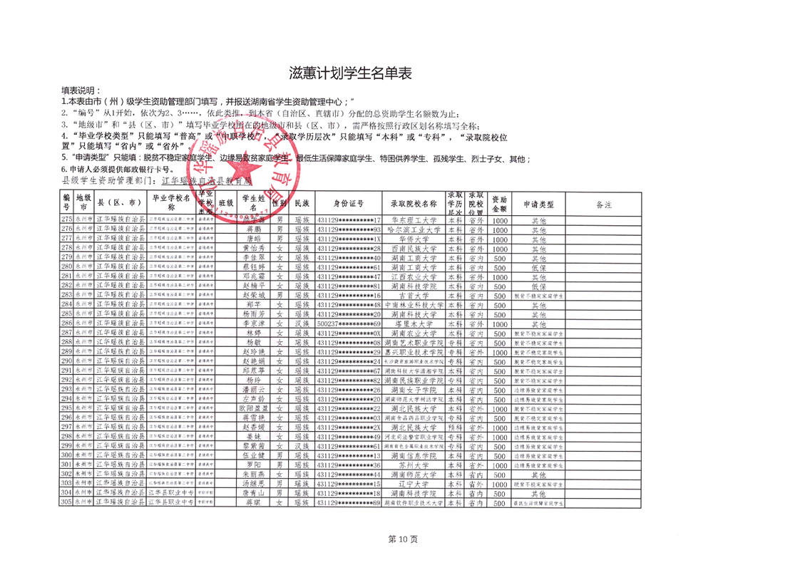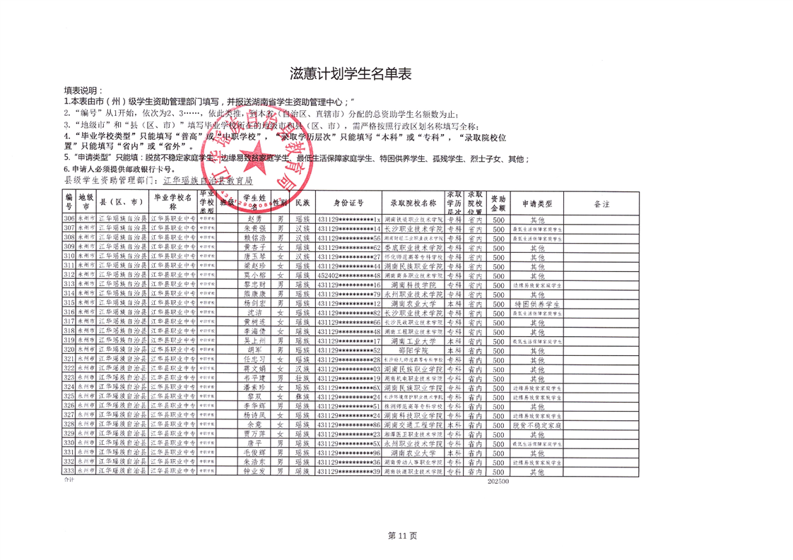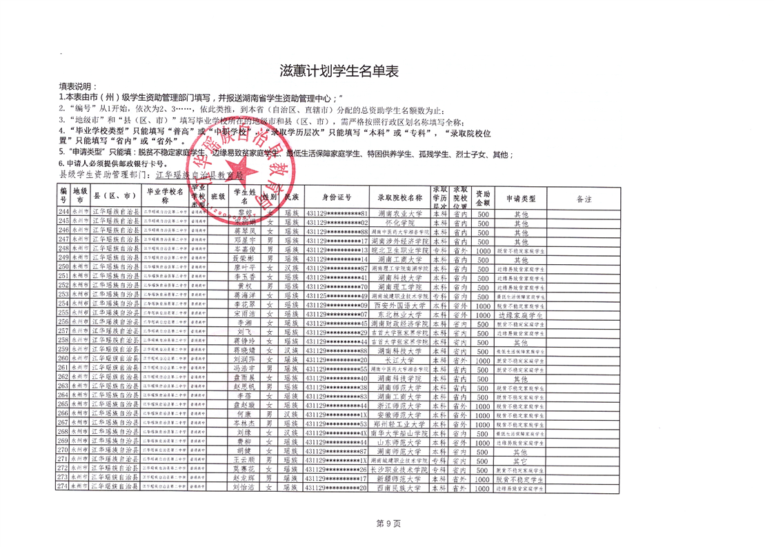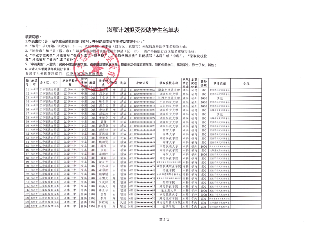 江华瑶族自治县滋蕙计划拟受资助学生名单公示