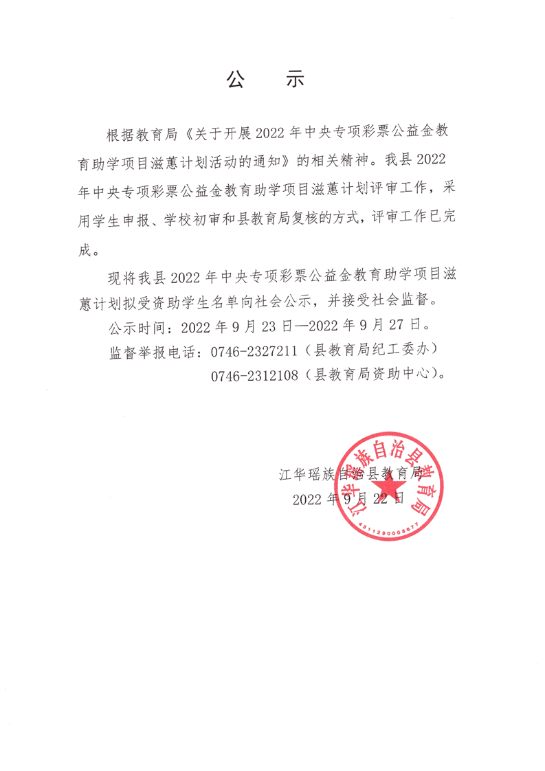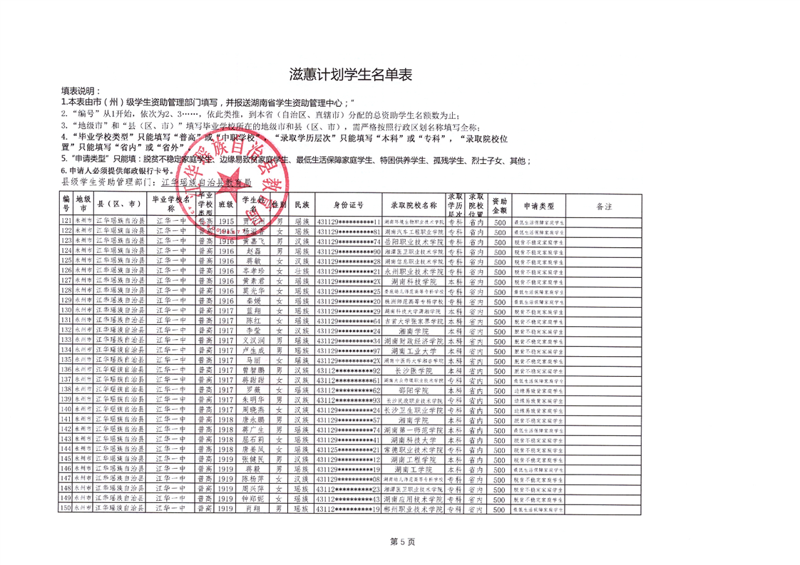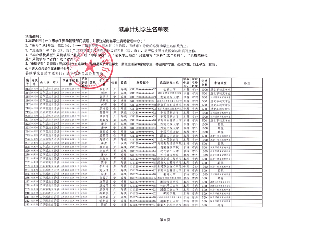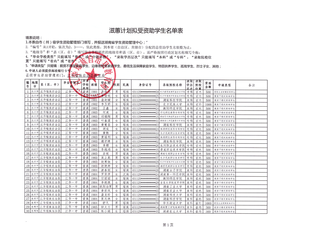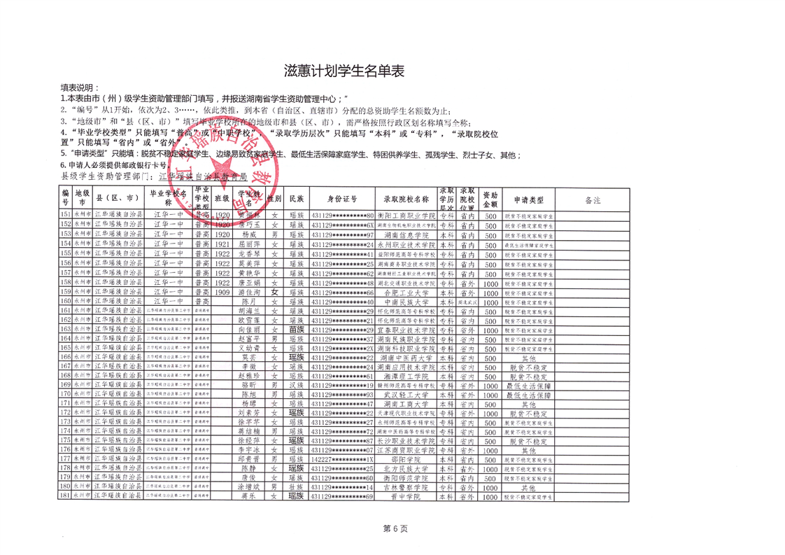 江华瑶族自治县滋蕙计划拟受资助学生名单公示