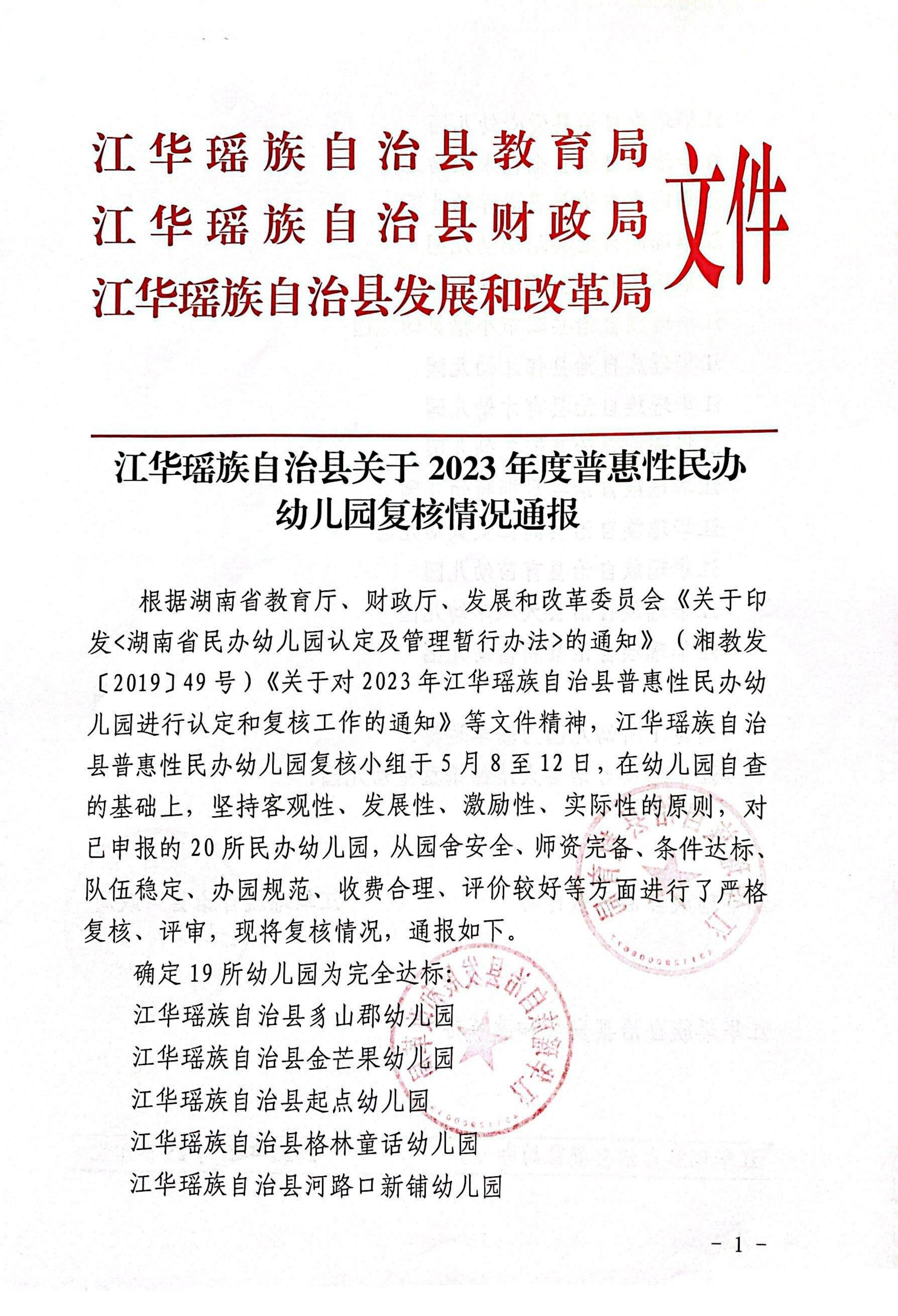 江华瑶族自治县关于2023年度普惠性民办幼儿园复核情况通报