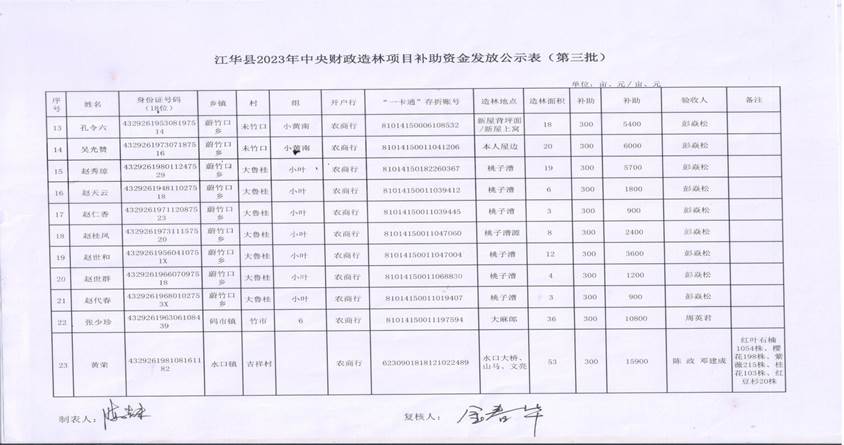 江华瑶族自治县2023年中央财政造林补助(第三批)
