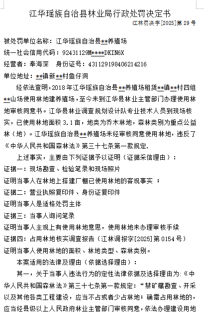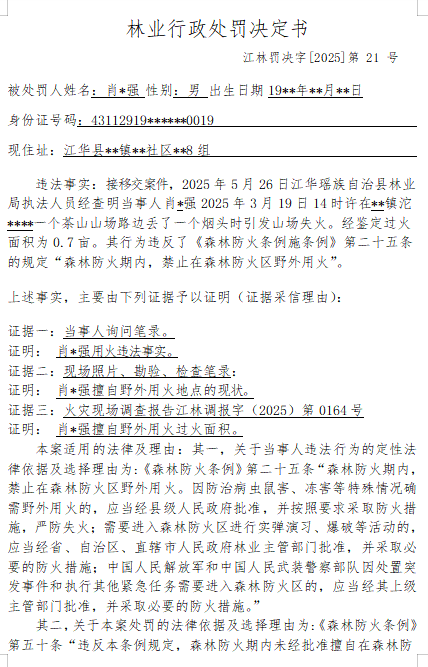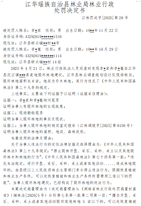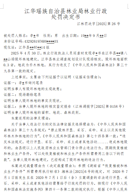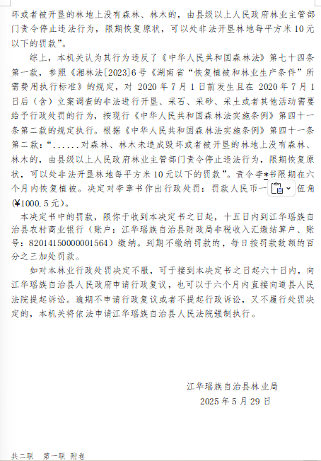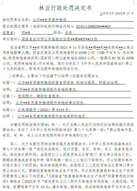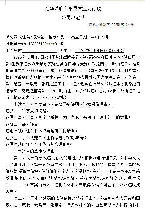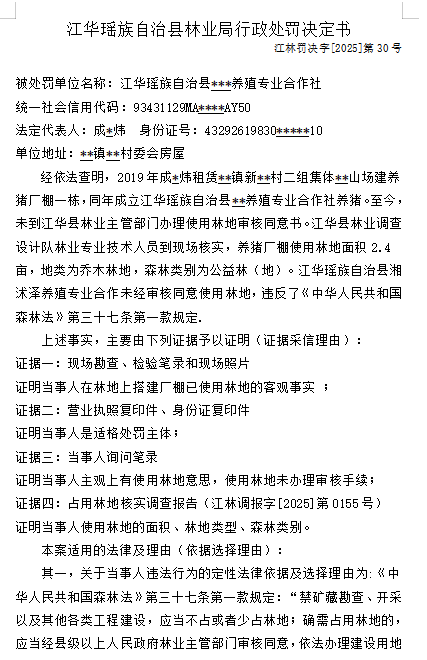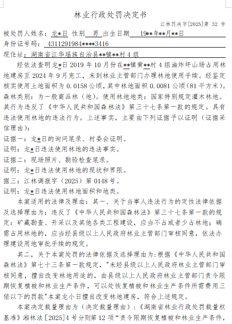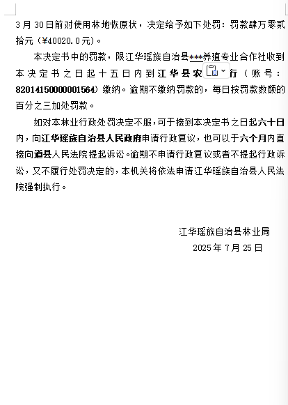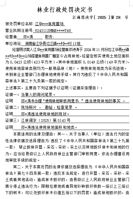 林业行政处罚决定书