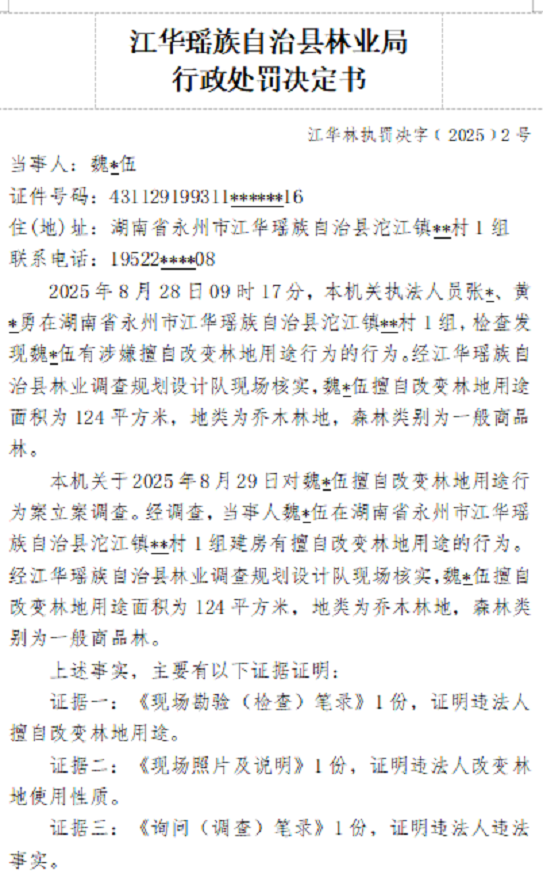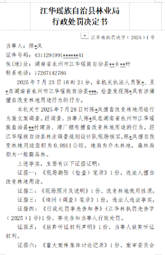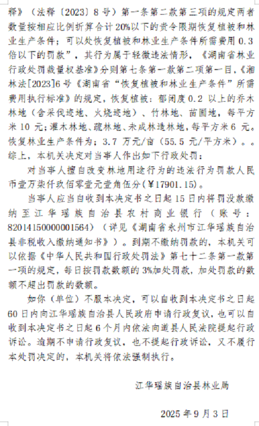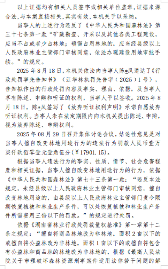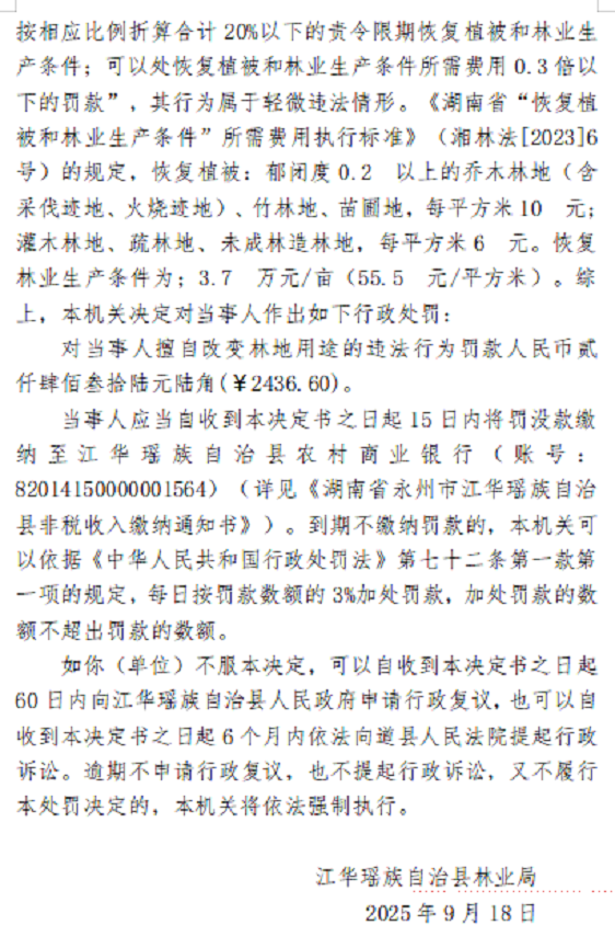 林业行政处罚决定书