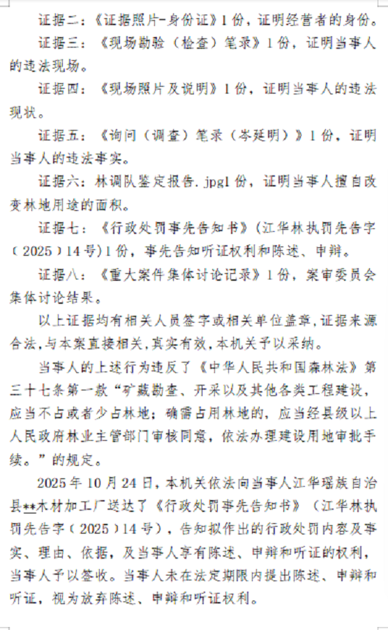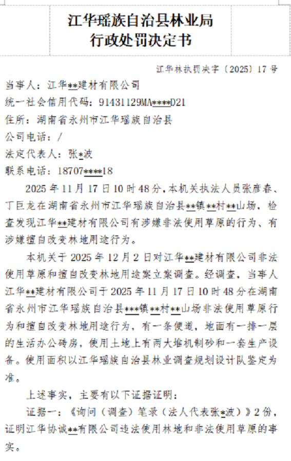 江华瑶族自治县林业局行政处罚决定书