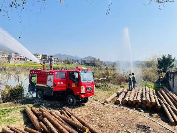 此次防火演练模拟所城村突发森林火情,应急队员们迅速集结响应,应急车辆在最短时间内抵达火情地点。无人机升空实时查看火场信息,高压水泵水带快速铺设完毕,应急队员们熟练地操作着各类设备,逐步控制火势蔓延,成功扑灭火源,整个灭火过程紧张有序。