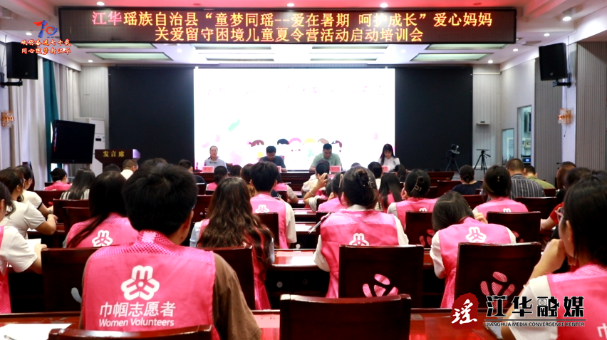7月11日,由江华妇联联合民政局、教育局、团县委、文旅局、科协举办江华“童梦同瑶——爱在暑期・呵护成长” 关爱留守困境儿童夏令营活动启动培训会。江华县委常委、组织部长唐元甲,江华副县长唐一平出席会议。会议由唐一平主持。